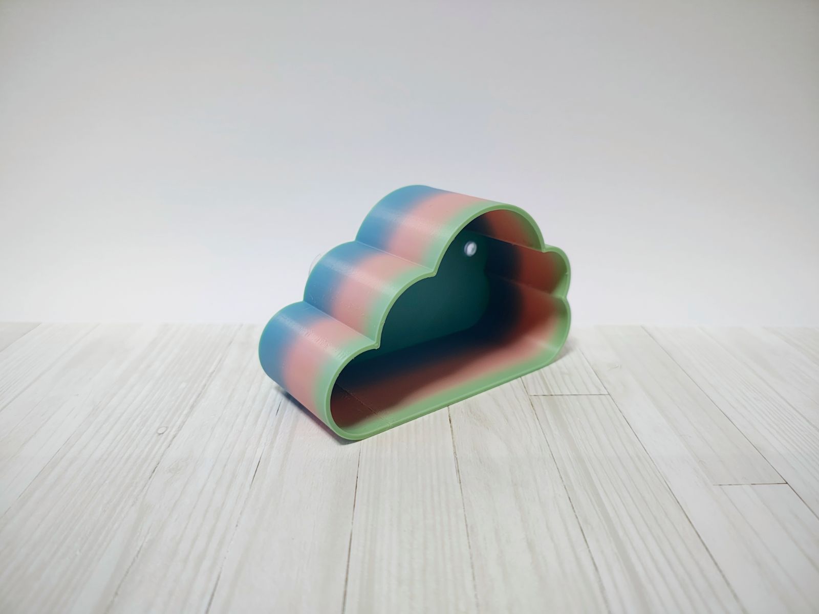 【世界に一つのグラデーション】 3Dプリンターでの製造過程で色が混ざり合うため、色の出方は一つ一つ異なります。 まさに「世界に一つだけの虹の雲」をお届けします。 3.