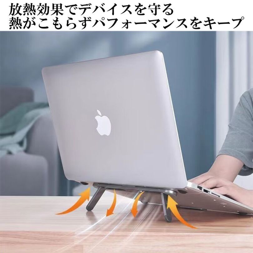 極薄 貼り付け式 ノートPC スタンド2段階角度調整 放熱対策 持ち運び便利