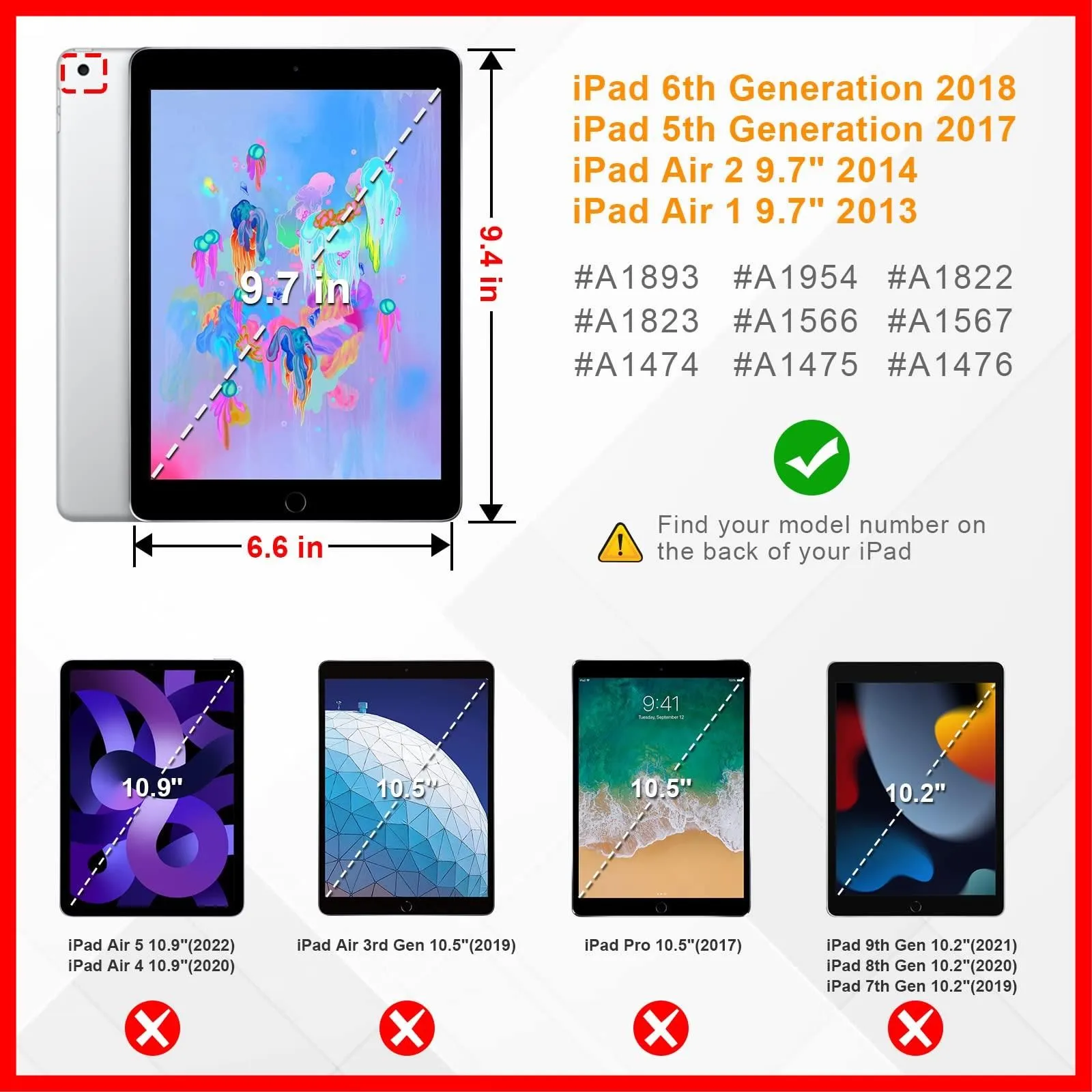 【対応機種】 iPad 9.7 インチ 第6世代 2018 (モデル番号:A1893/A1954) 、 iPad 9.7 インチ 第5世代 2017 (モデル番号:A1822/A1823) 、iPad Air 2 (モデル番号:A1566/A1567) 、 iPad Air 1 (モデル番号:A1474/A1475/A1476) 専用 スマートケース カバー