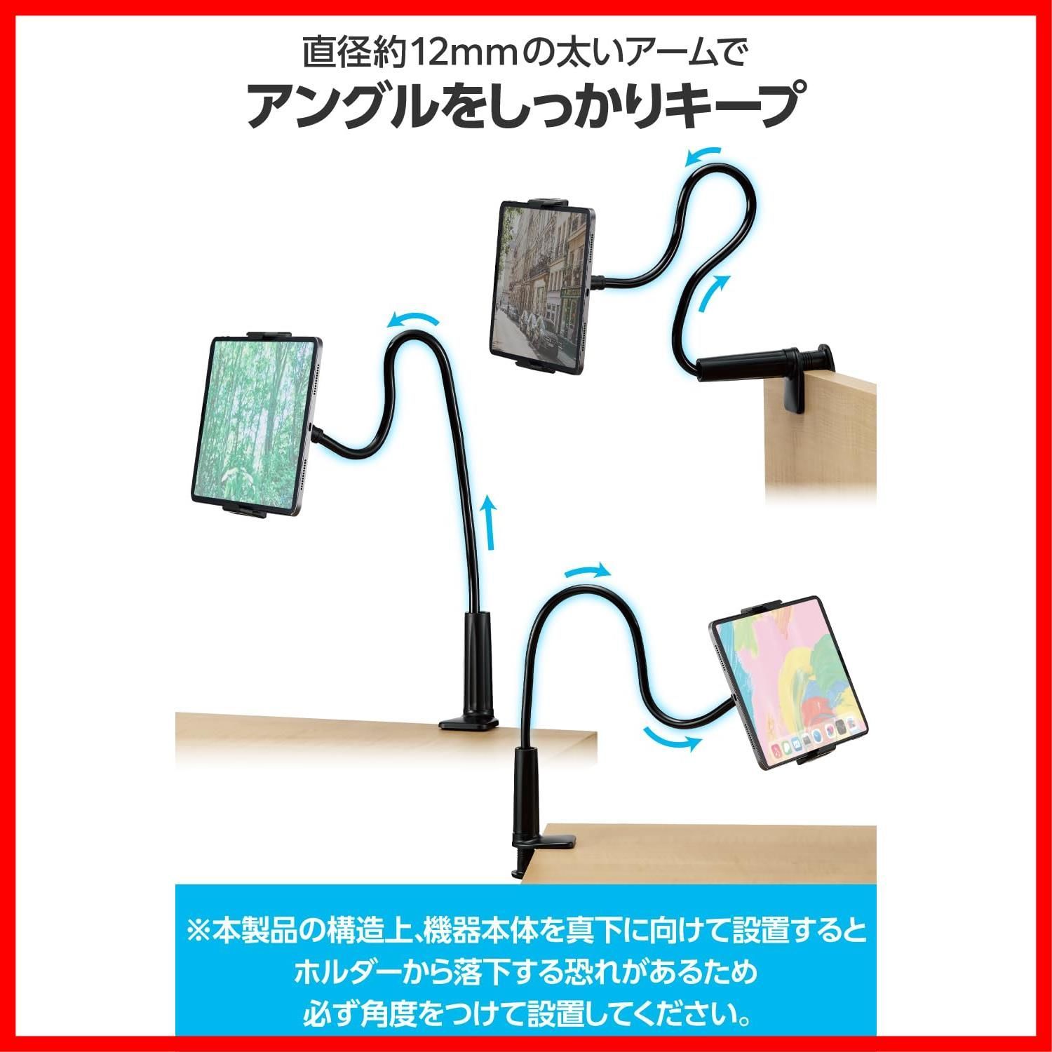 エレコム タブレット アーム スタンド 寝ながら スマホ iPad 固定 【4.6インチ~10.9インチ対応】 360度回転 自由自在に固定可能 約12mmの太いアームでしっかりキープ TBWDSLARMBK