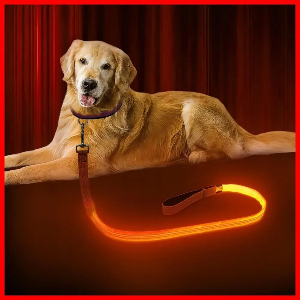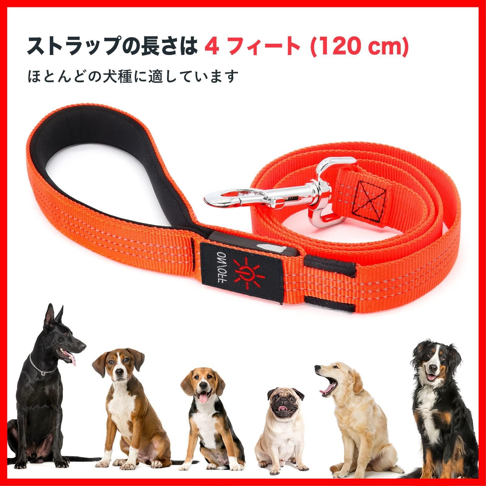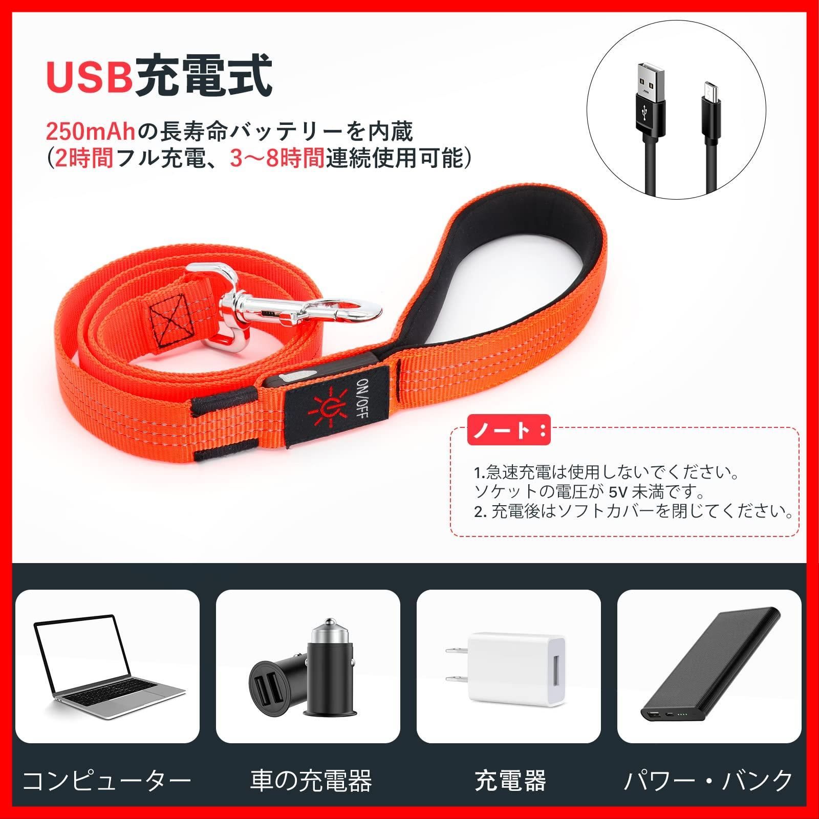 犬 リード 光る 犬散歩ライト ledリード 1.2m 夜間 USB充電式 リードライト付き 視認距離500mで夜間安心 中型犬 大型犬 ペット用品 (オレンジ+反射糸3本)