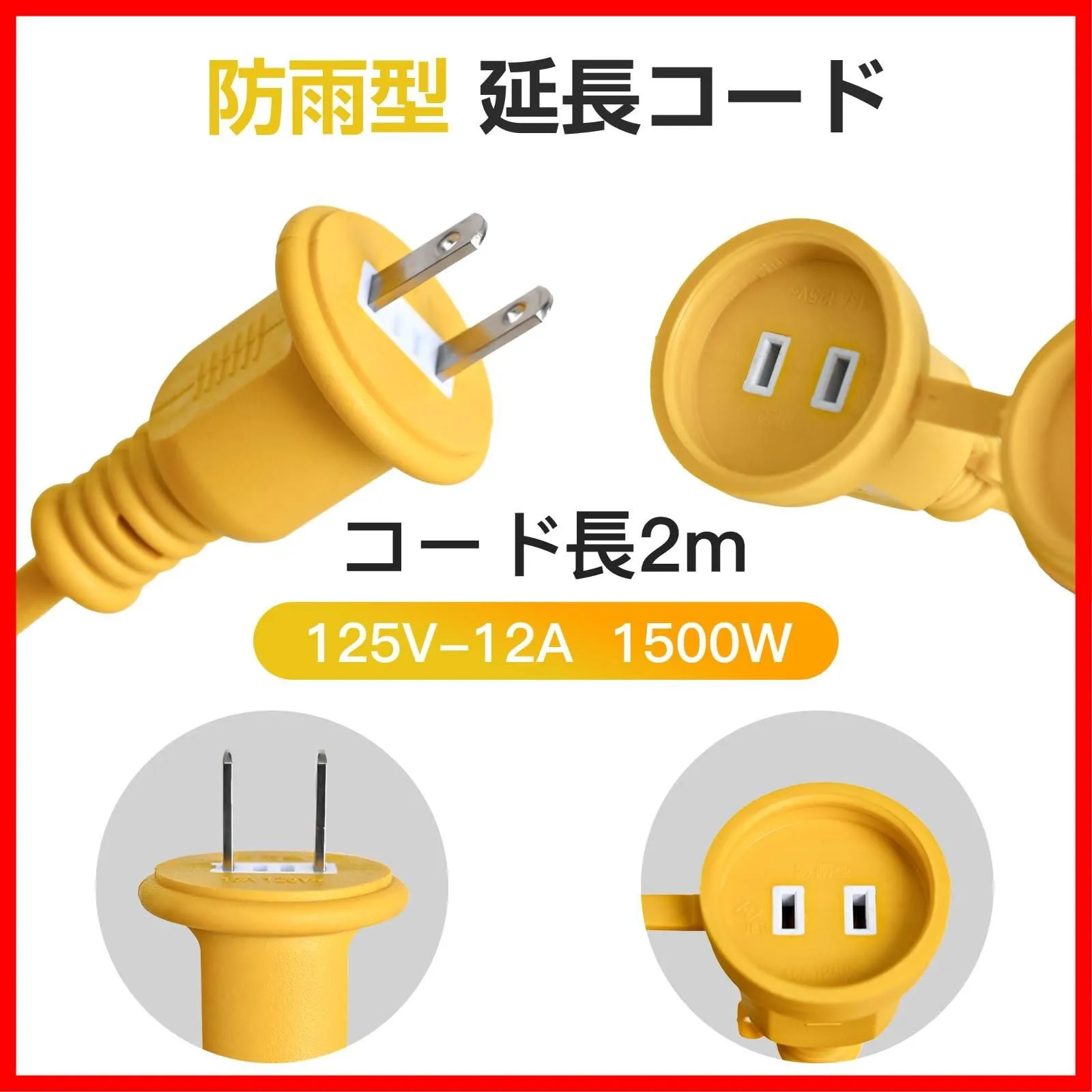 延長コード 防雨型 防水 屋外 PSE認証済 延長コード 2m 3m 5m 10m選択可能 (2m) イエロー