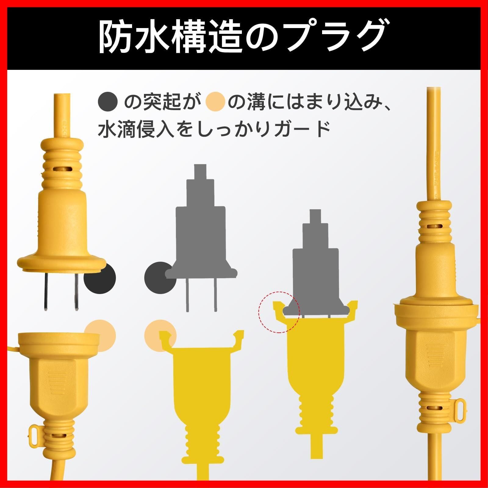 【屋外で使用可能】屋外作業も想定して作られた延長コードは、差し込み口を包みこむように覆われており悪天候の中でも使用することが可能となっています。