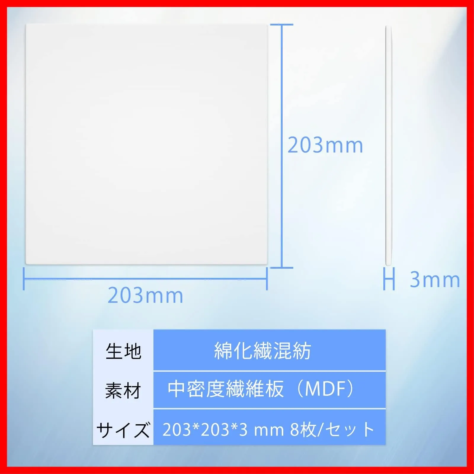 【多用途】様々な場合で適用!油彩・アクリル兼用なので、水彩画、油絵画、芸術作品、絵画、工芸、ホームデコレーションなども適用です。初心者からプロまでどなたでもご利用いただけます。 ブランド HANSILK 色 203x203mm*8枚 材質 綿混 商品の寸法 20.3長さ x 20.3幅 cm サイズ B2 8枚-20.3x20.3cm ━━━━━━━━━