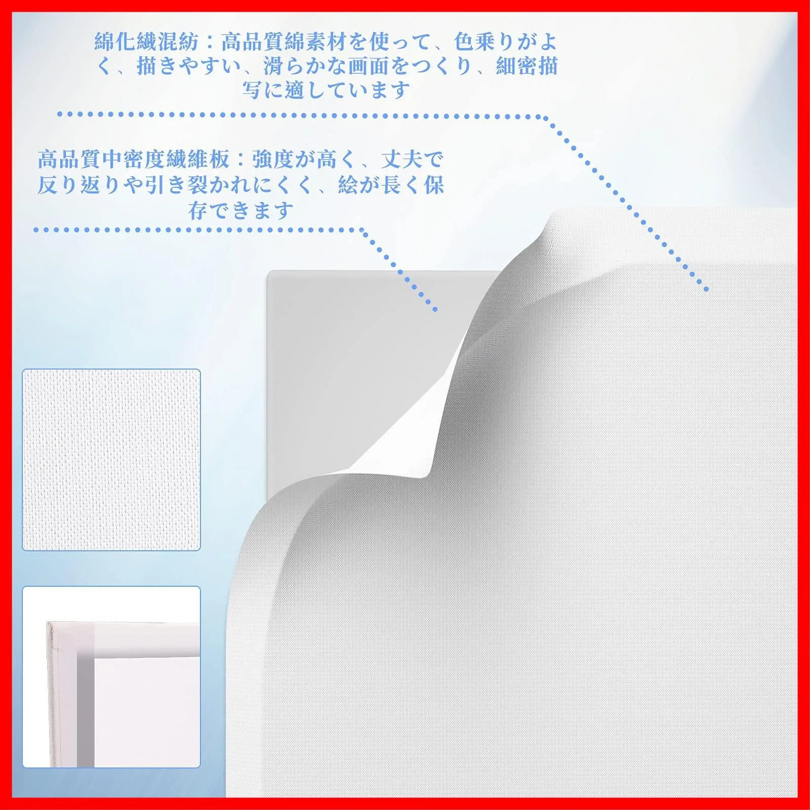 【優れる綿化繊混紡】素材は綿・化繊の高品質素材を素材を採用しております、麻張キャンバスに比べ目が均一できれいです。キャンバスは中目、油彩・アクリル兼用、さまざまな絵具に対する吸収性にすぐれ、引き裂きにくく、塗料が漏れ防止可能。亜麻に比べ繊細な綿は、滑らかな画面をつくり、細密描写に適しています。アクリル絵具・油絵の具を使って本格的な絵の世界を表現出来る!