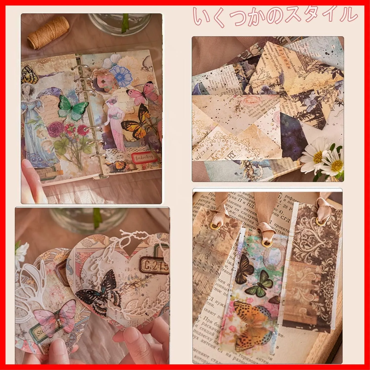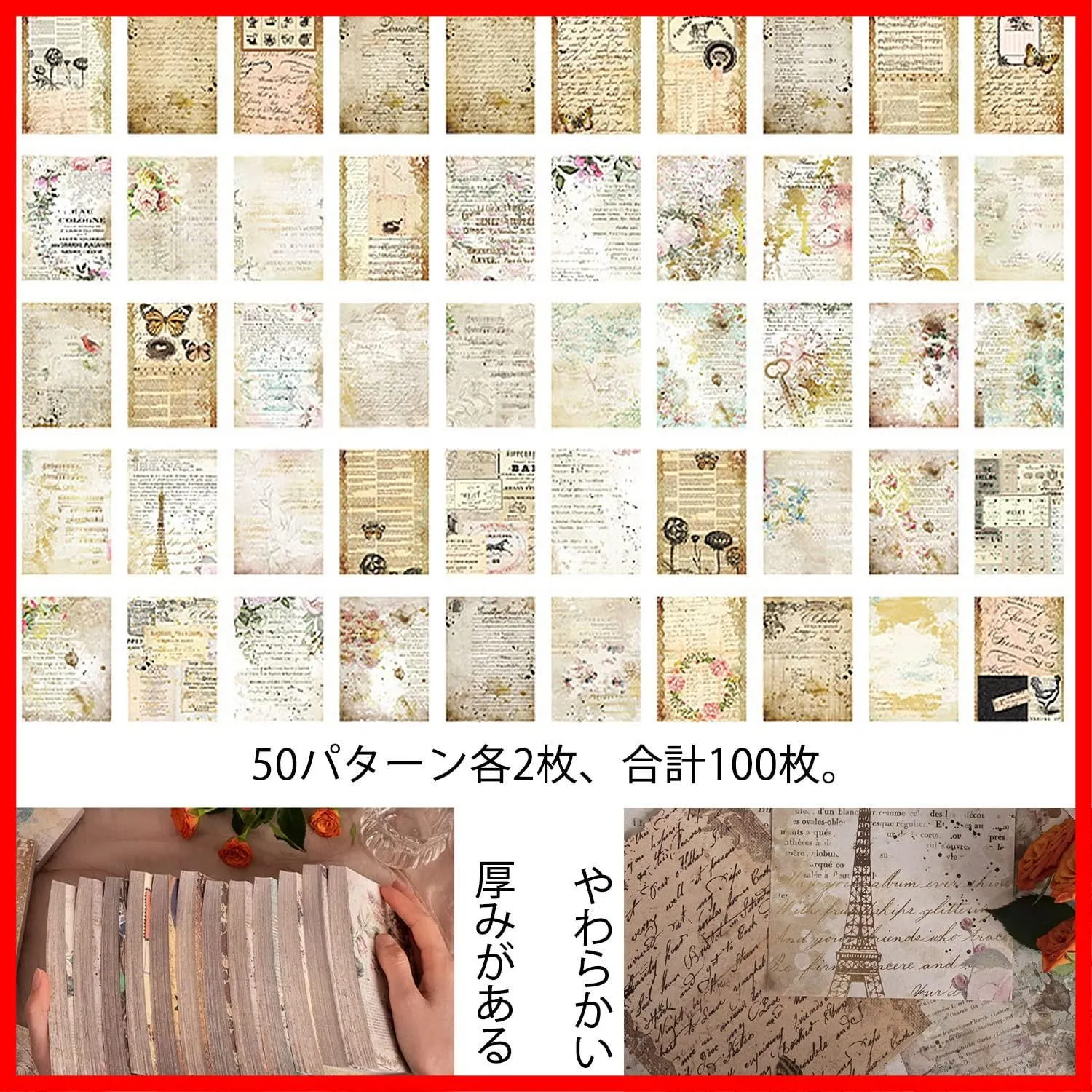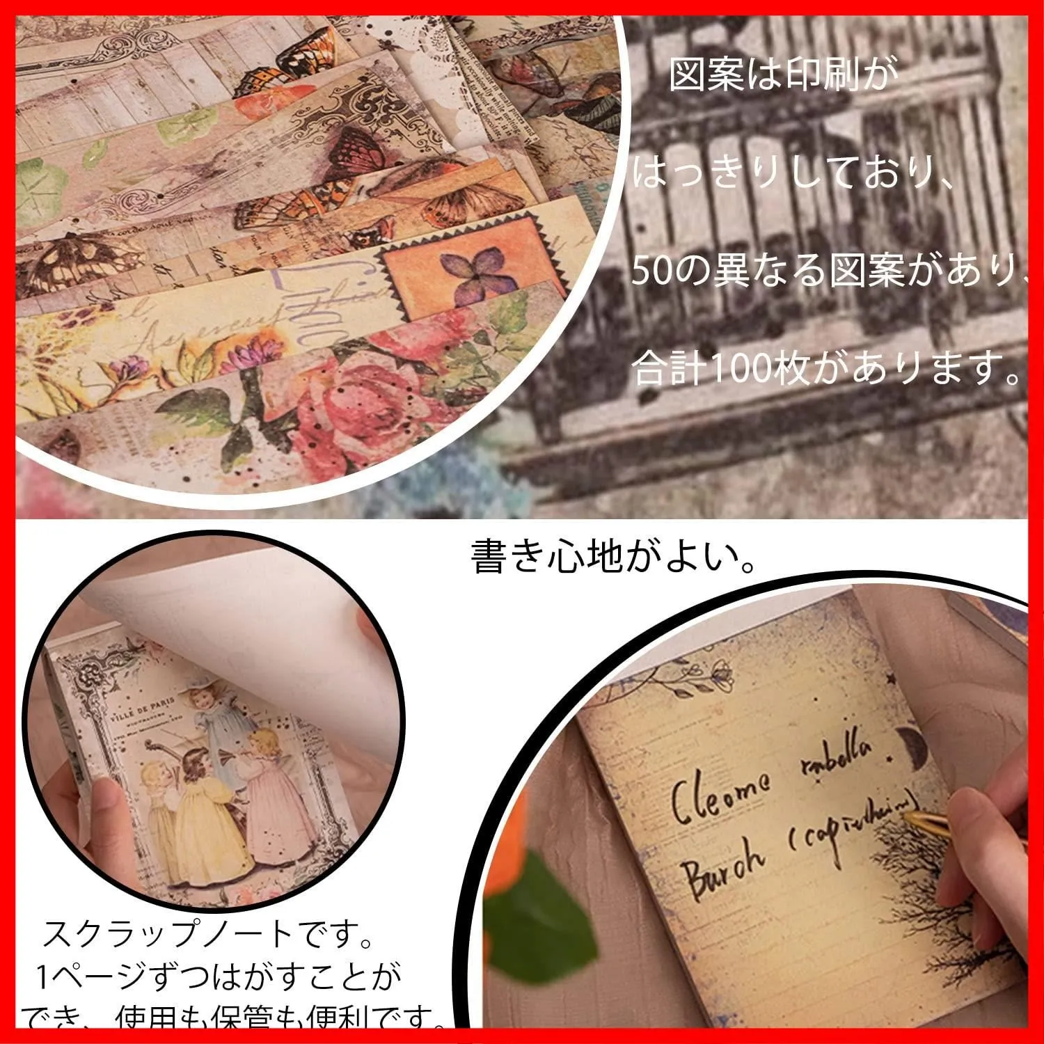 YOVOY コラージュ 素材 デザインペーパー レトロ 素材紙 おしゃれ かわいい 両面印刷 手帳素材紙 花 風景 植物 背景紙 ギフト包装紙 アンティーク ヴィンテージ素材紙 コラージュ ノート 日記 カレンダー スケジュール 100枚 (レター)