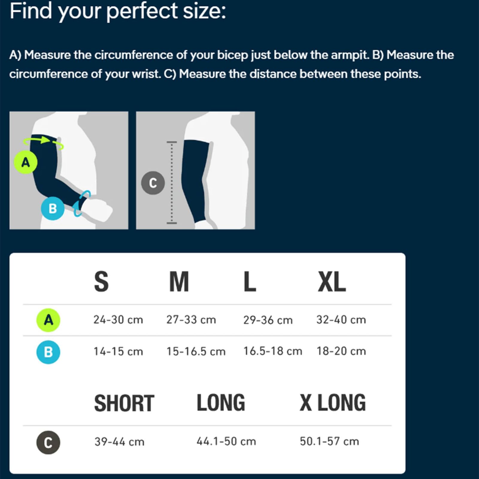 ショート:腕の長さ39-44cm / ロング:腕の長さ44.1-50cm / Xロング:50.1-57cm