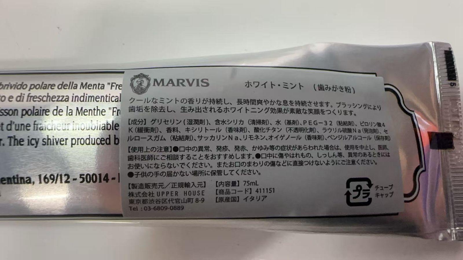 MARVIS(マービス) ホワイト・ミント 歯磨き粉 75mL ×1 922343++