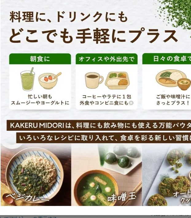 毎日の食事やドリンクに、“かける・まぜる”緑の習慣。