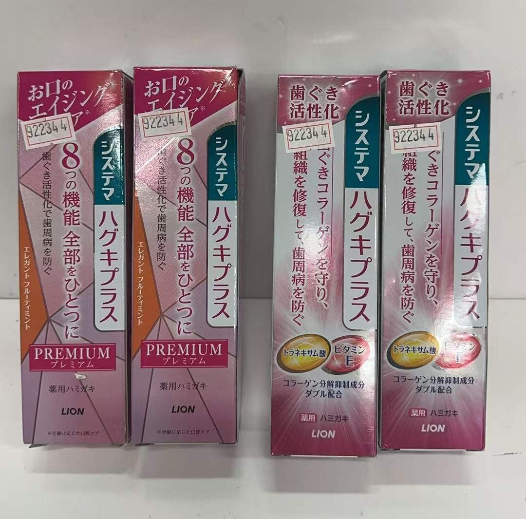 【医薬部外品】 <セット内容> ・システマ ハグキプラス プレミアムハミガキ エレガントフルーティミント 95g ×2本 ・システマ ハグキプラス ハミガキ 90g ×2本 合計4本セット