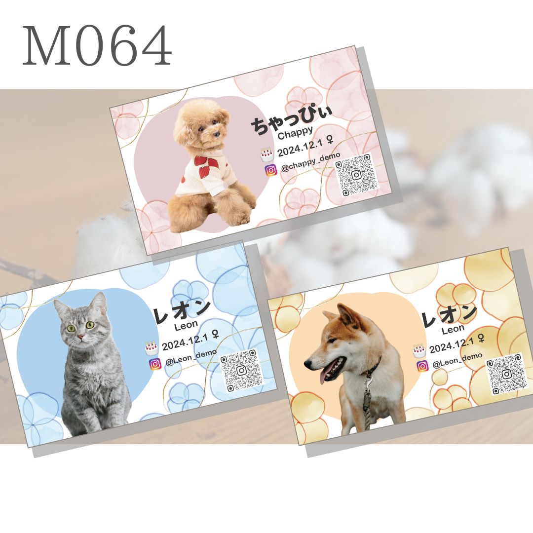 M064 ペット名刺 セミオーダー 片面100枚印刷送料込み 裏面はオプションです