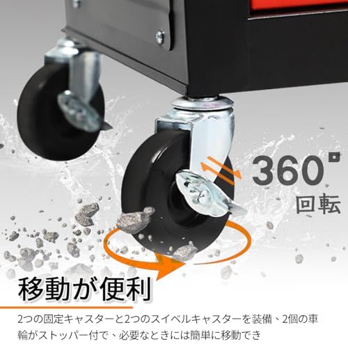 【安全設計で安心】ツールキャビネットはハンドルも付きで、握りしやすく、さらに使いやすいです。引き出しはベアリングレールを使用し、開閉をスムーズ、耐久性が高い。鍵付きでより良いプライバシーと保護性があり、様々な部品を安心で保管することができます。