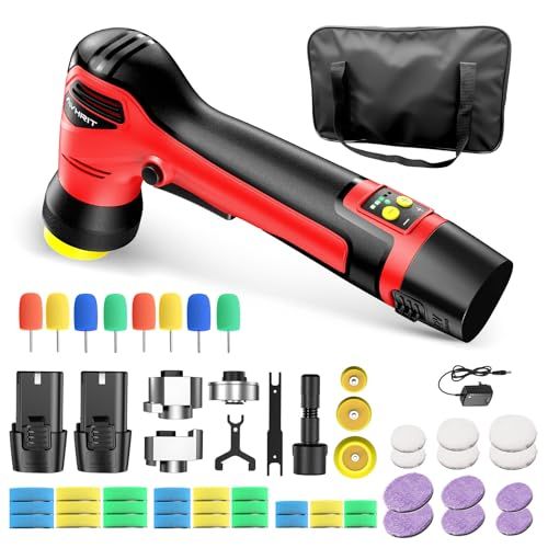 【2つの高品質大容量バッテリー】2個大容量バッテリー付属、ワイヤーの束縛から完全に解放されたコードレスポリッシャー。安全性、安定性、耐用年数の面でバッテリーをアップグレードしました。通常の電池の5倍となる約250回の充放電が可能です。バッテリーはフル充電後約60分間使用でき、フル充電にはわずか1時間かかります。満充電で車両全体を研磨可能です。PSE認証および国際UN38.3安全試験を通過。安心してお使いいただけます。または、ミニポリッシャーは超軽量ボディにスタイリッシュな外観を採用し、女性ユーザーも片手で簡単に操作できます。人間工学に基づいた形状と滑り止めシリコンハンドルにより、長時間の作業でも手首の疲れを軽減します。