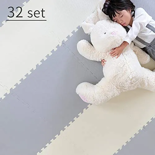 リファニ 大判 60cm ジョイントマット 32枚 6畳 防音 防水 EVA ノンホルムアルデヒド 床暖房対応 隙間が少なく掃除がしやすい大判 サイドバーツ付き ベビーマット おしゃれ リビング 赤ちゃん 可愛い 子供部屋 スノーグレー32枚 JH-001★m