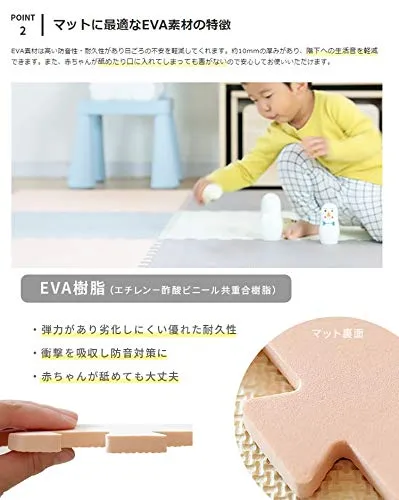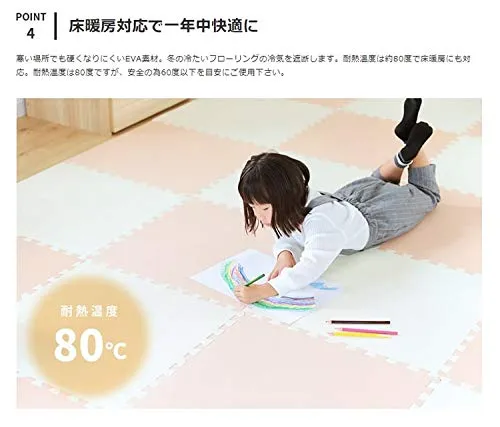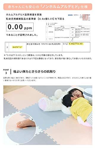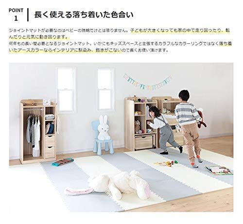 他にない落ち着いたカラーが特徴的なジョイントマット。幅広いインテリアと相性良く組み合わせることができ、お部屋の雰囲気を崩すことなく設置することが可能です。転んだときの衝撃を吸収してくれるので、お子様のけがの心配を大幅に減らしてくれます。赤ちゃんの昼寝スペースや遊び場としても使える、おすすめアイテムです。
