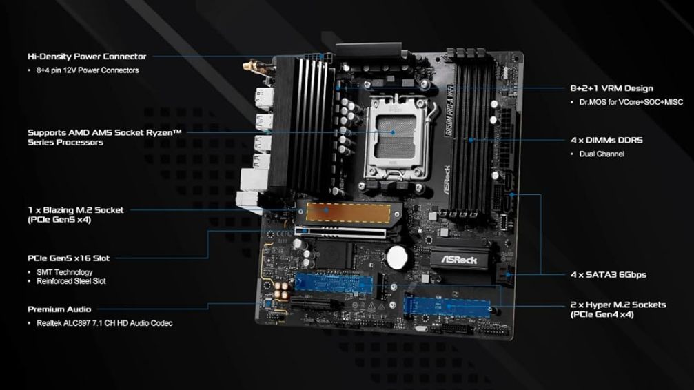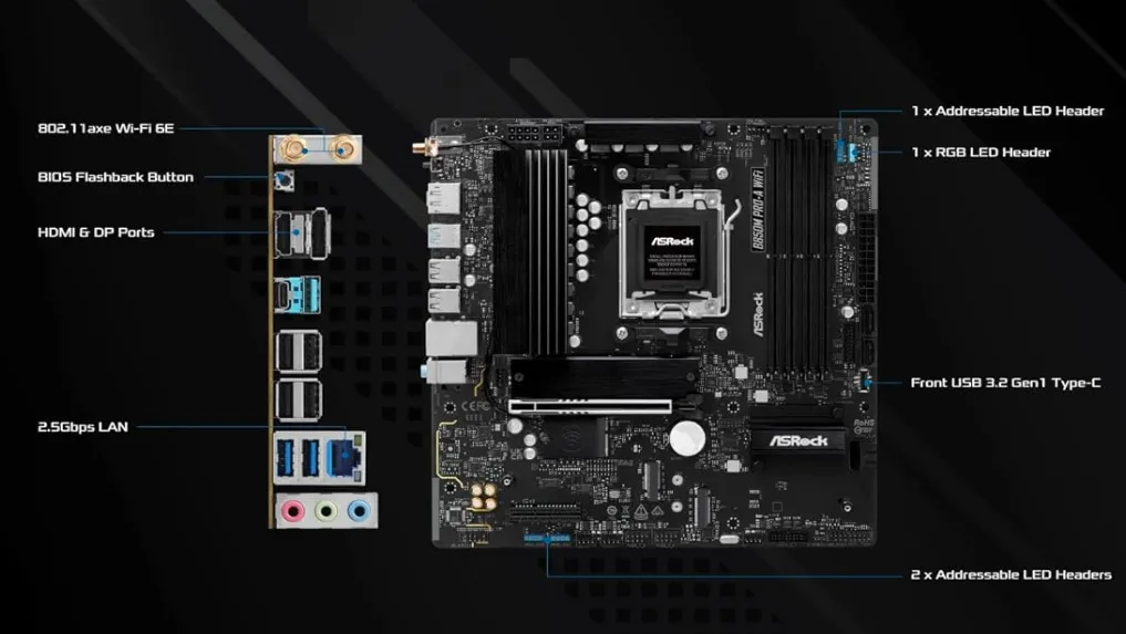 ASRock B850M Pro-A WiFi Micro-ATX マザーボード AMD Socket AM5 Ryzen 9000、8000、7000シリーズプロセッサに対応
