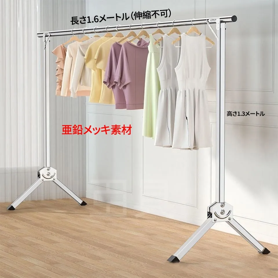 ステンレス 物干し竿 1本杆 折りたたみ 1.6m 伸縮不可 室内 屋外 兼用 ランドリー ハンガー スタンド 省スペース 収納簡単 ワンタッチ 布団干し タオル掛け 新生活 コンパクト