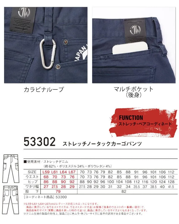 53302 Jawinカラーデニムカーゴパンツ ライトグレー 88 [ライトグレー] [Free Size]