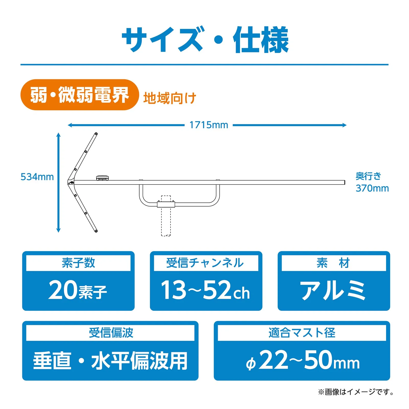 【特徴】電波の弱い地域に適した利得の高いアンテナです。