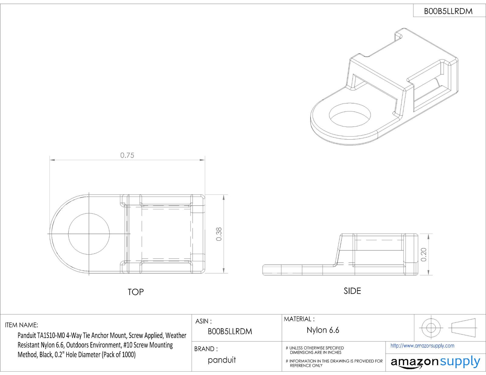 新品 パンドウイット タイアンカー 耐候性ナイロン66 TA1S8-M0