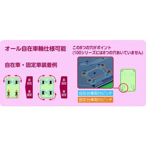 ●自在キャスター、固定キャスター各2個(ラジアルベアリング入省音キャスター)