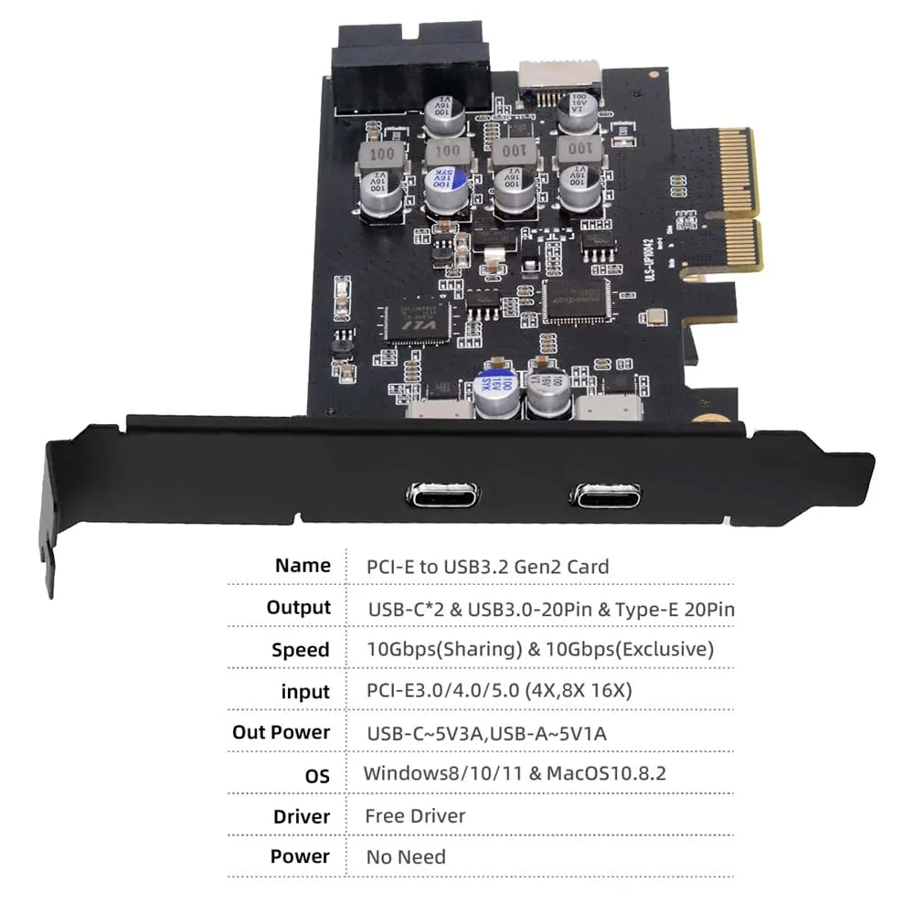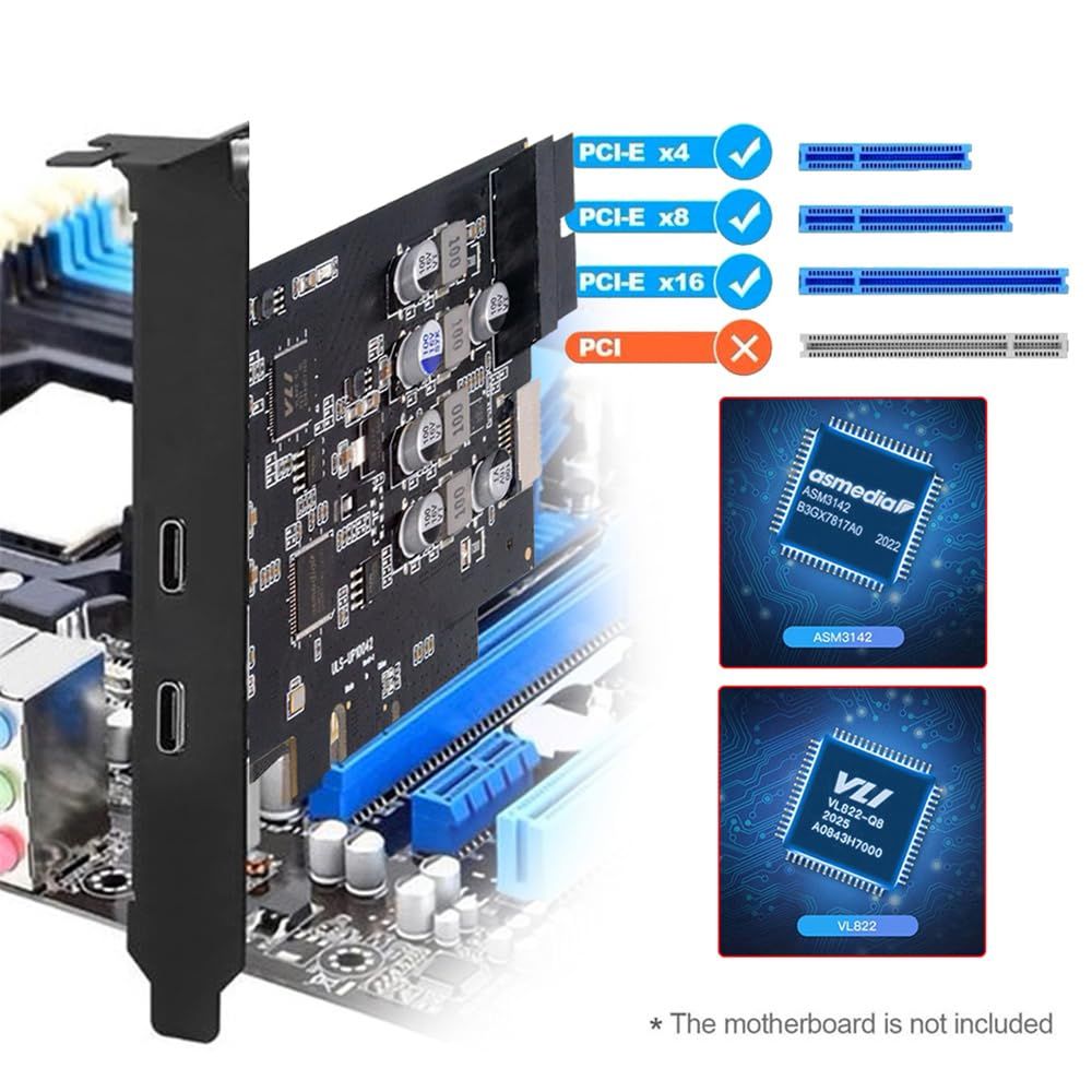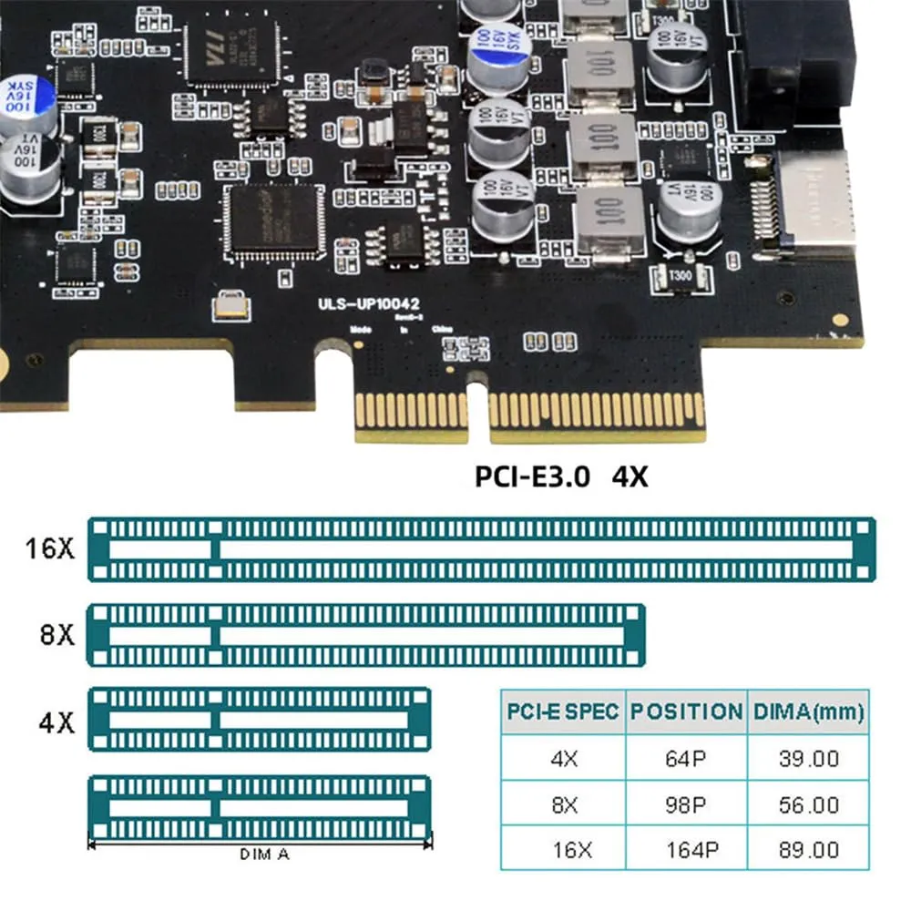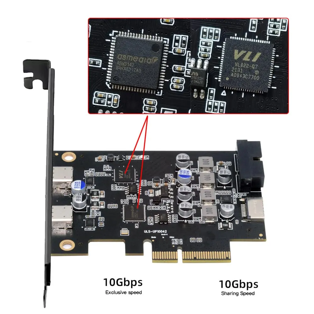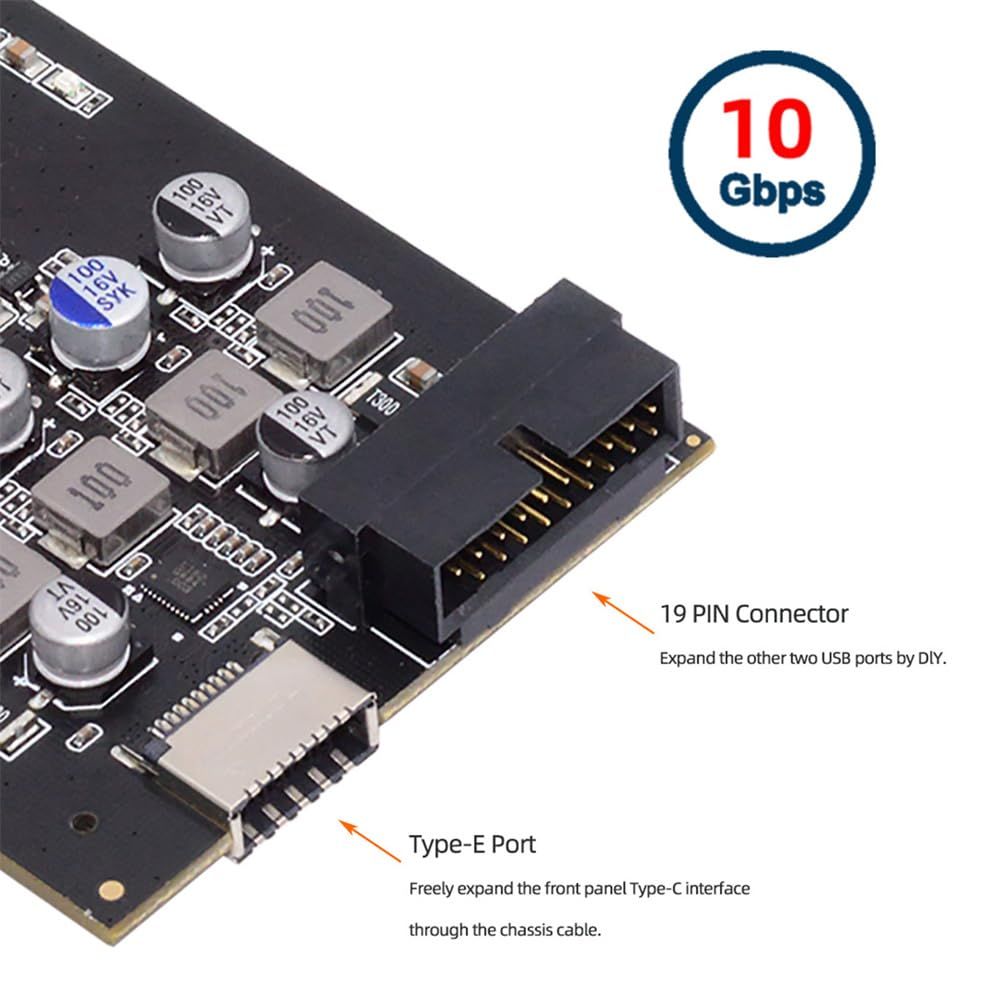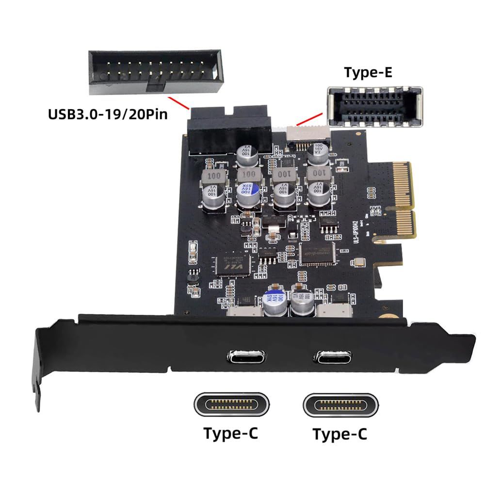 新品 Xiwai PCI-E Expressカード - Type-E USB 3.1フロントパネルソケット&USB3.0 19ピン/20ピン & デュアルUSB-C Type-C拡張アダプター ASM3142 VL822