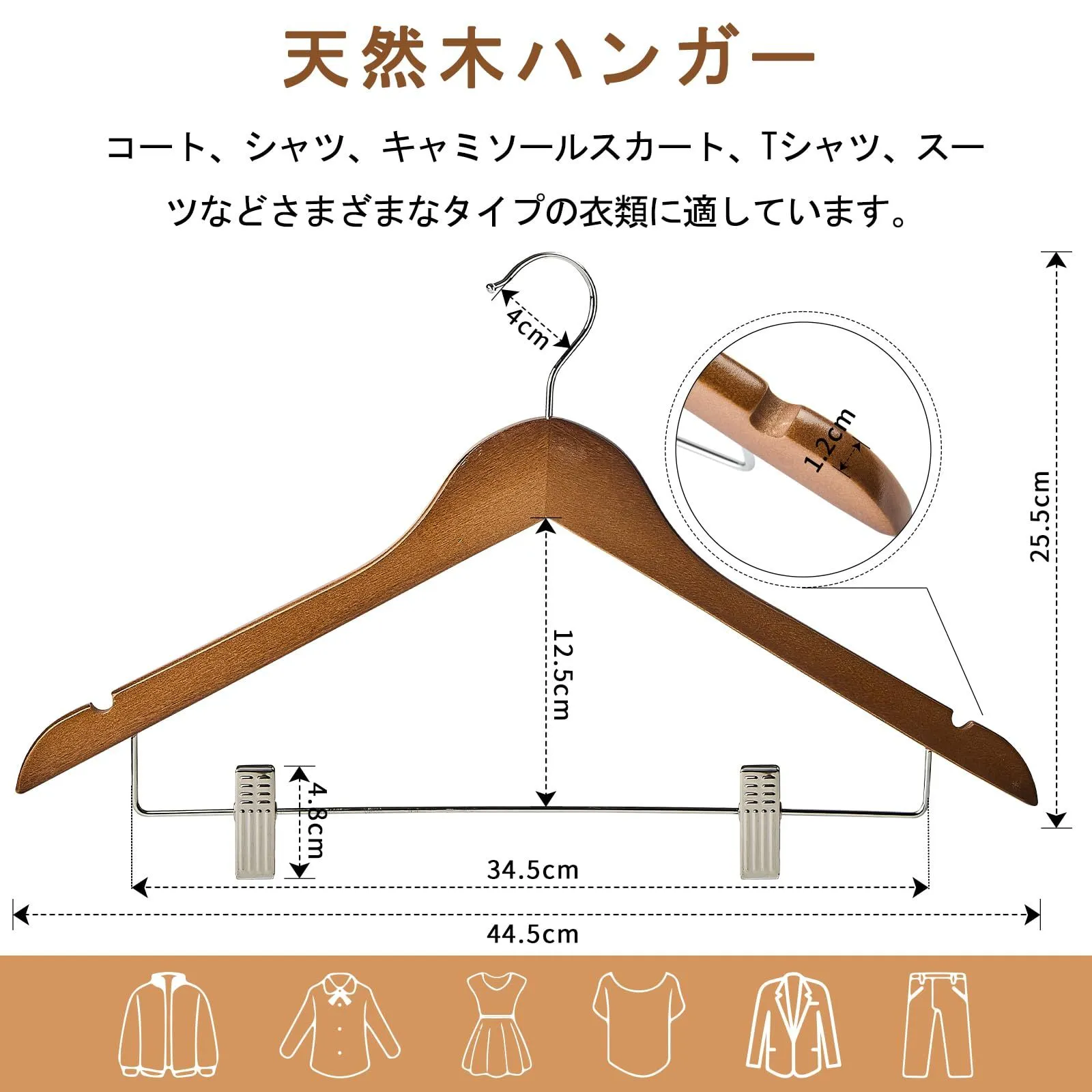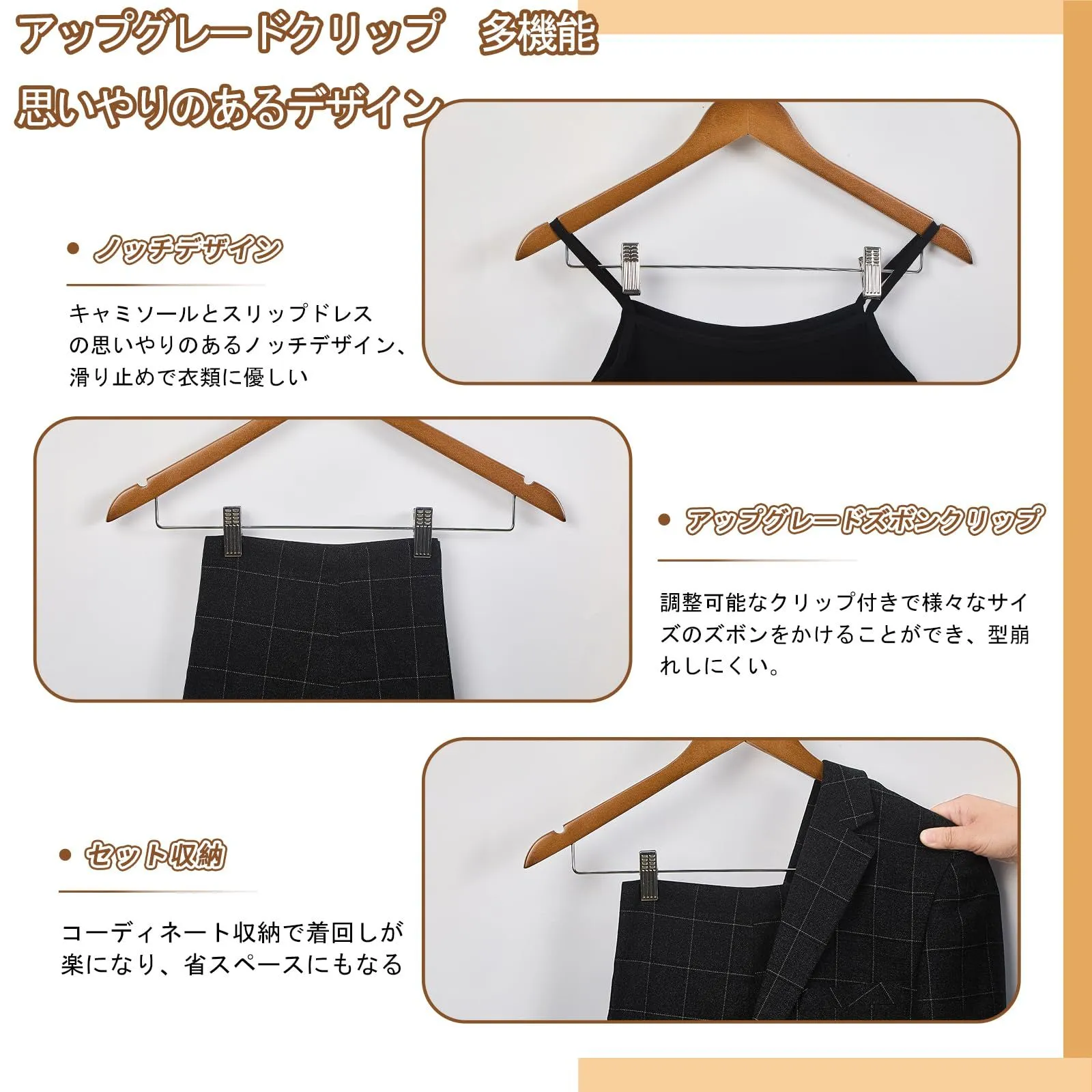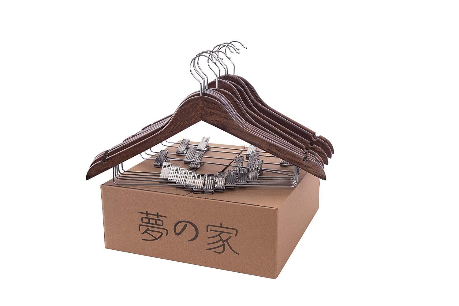 10本セット クリップ付きハンガー スーツ ジャケット コート用 手作 夢の家木製スーツハンガー 天然高級木 (茶色 10)