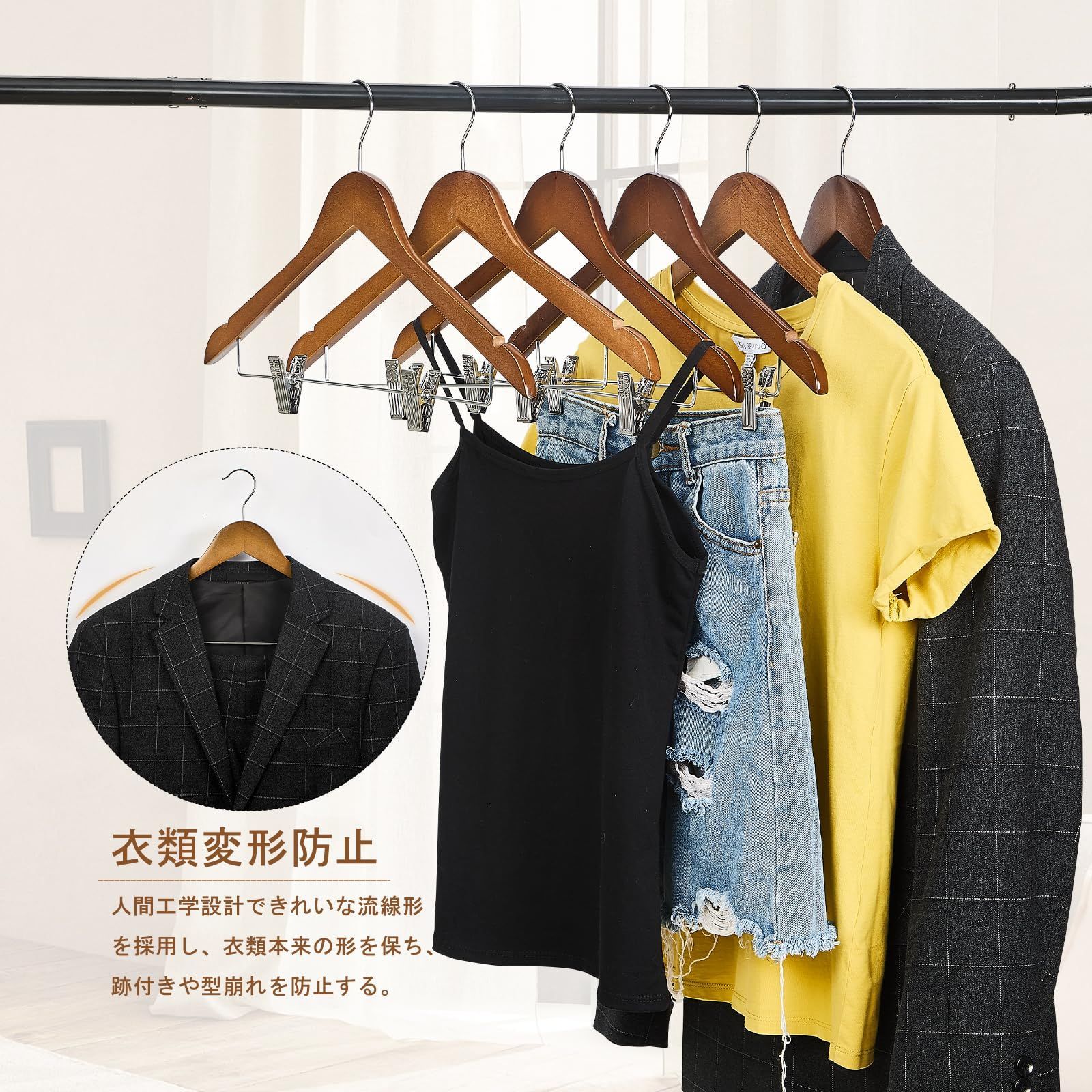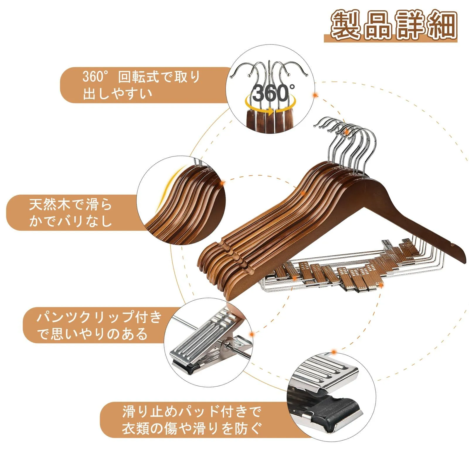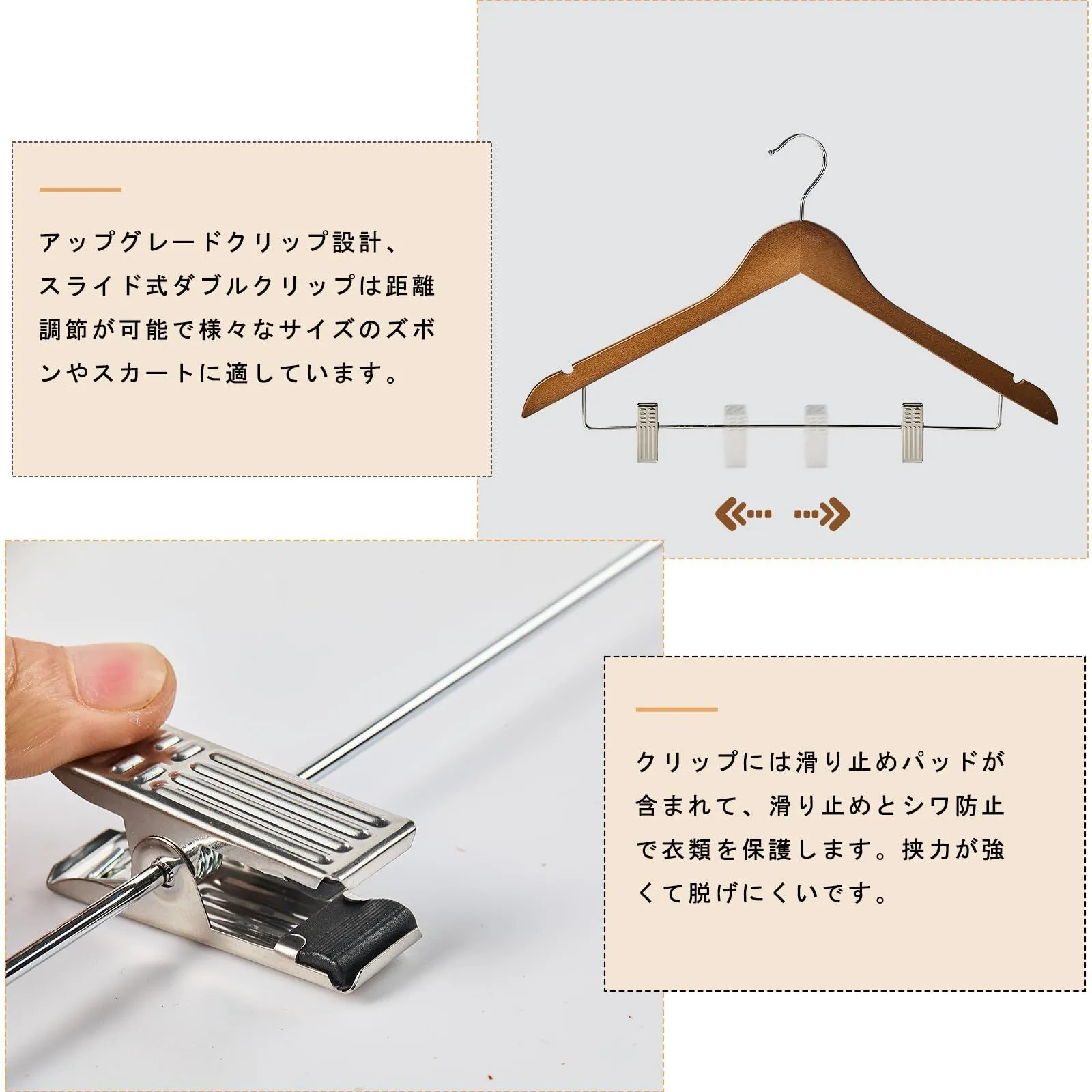 10本セット クリップ付きハンガー スーツ ジャケット コート用 手作 夢の家木製スーツハンガー 天然高級木 (茶色 10)