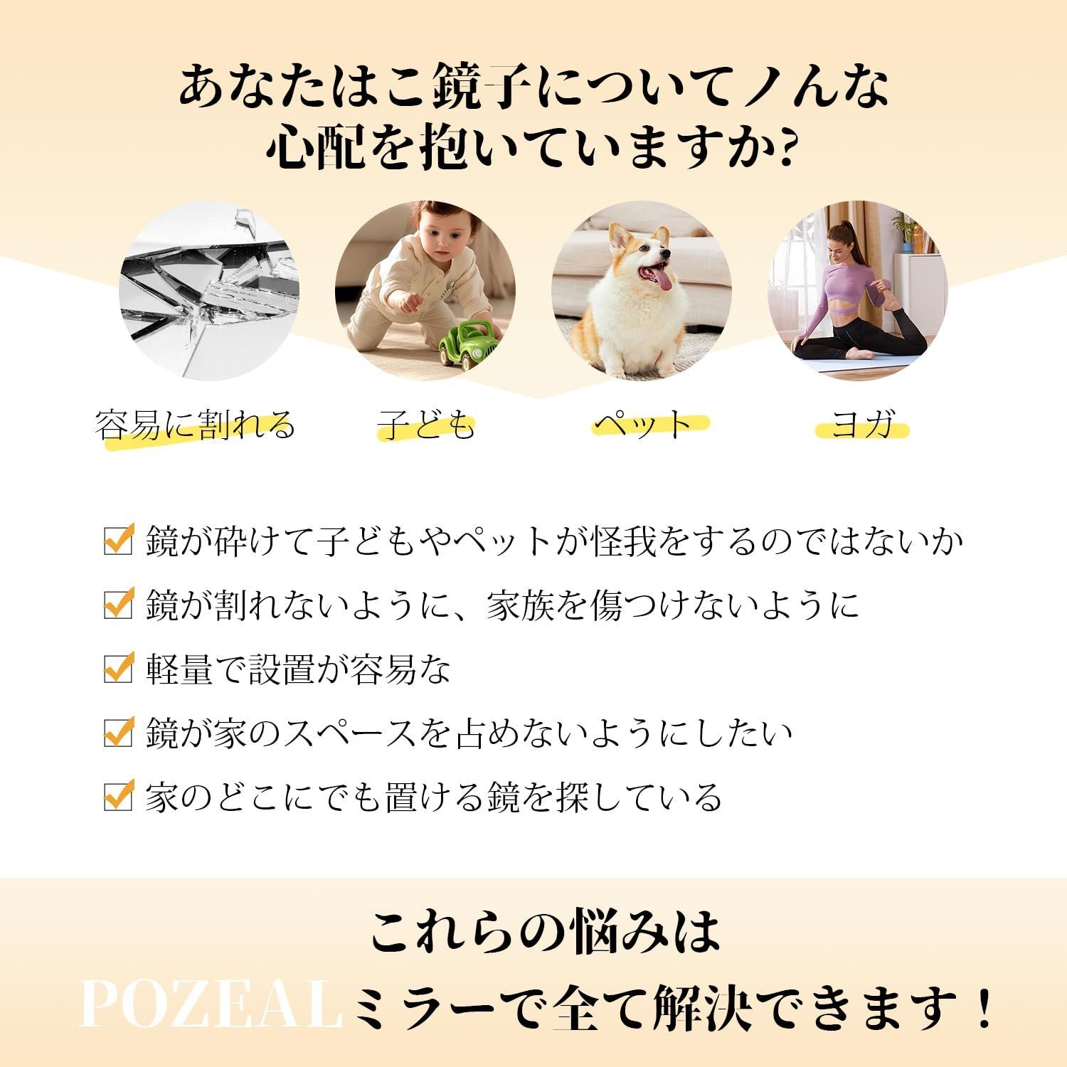 【諦めてませんか?】部屋が狭く、全身鏡を置くスペースが無いそんな悩みを解決したい一心でPOZEAL「どこでも貼れる割れない鏡」は誕生しました壁さえあればどこでも設置可能出かける前に全身をサッとチェックできます