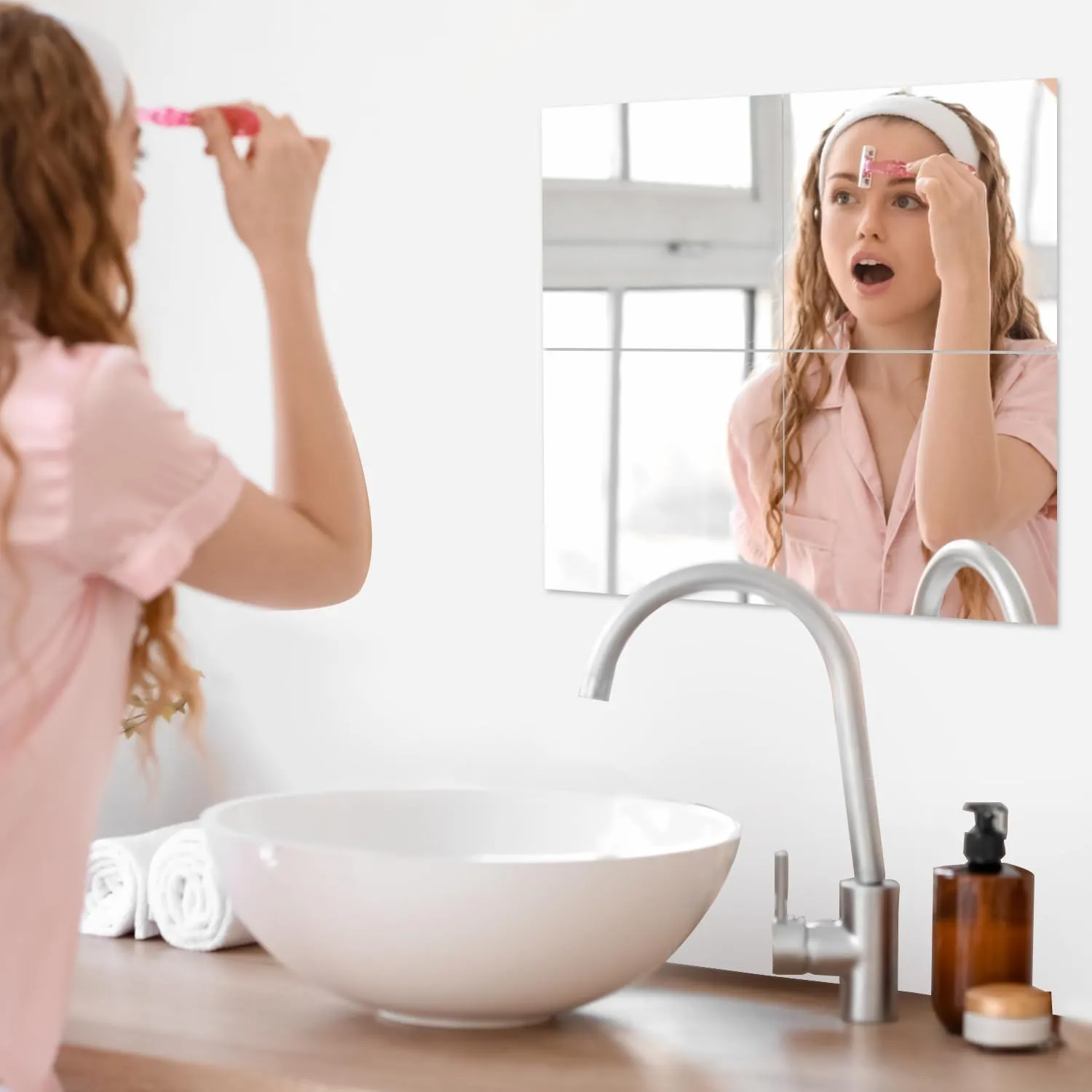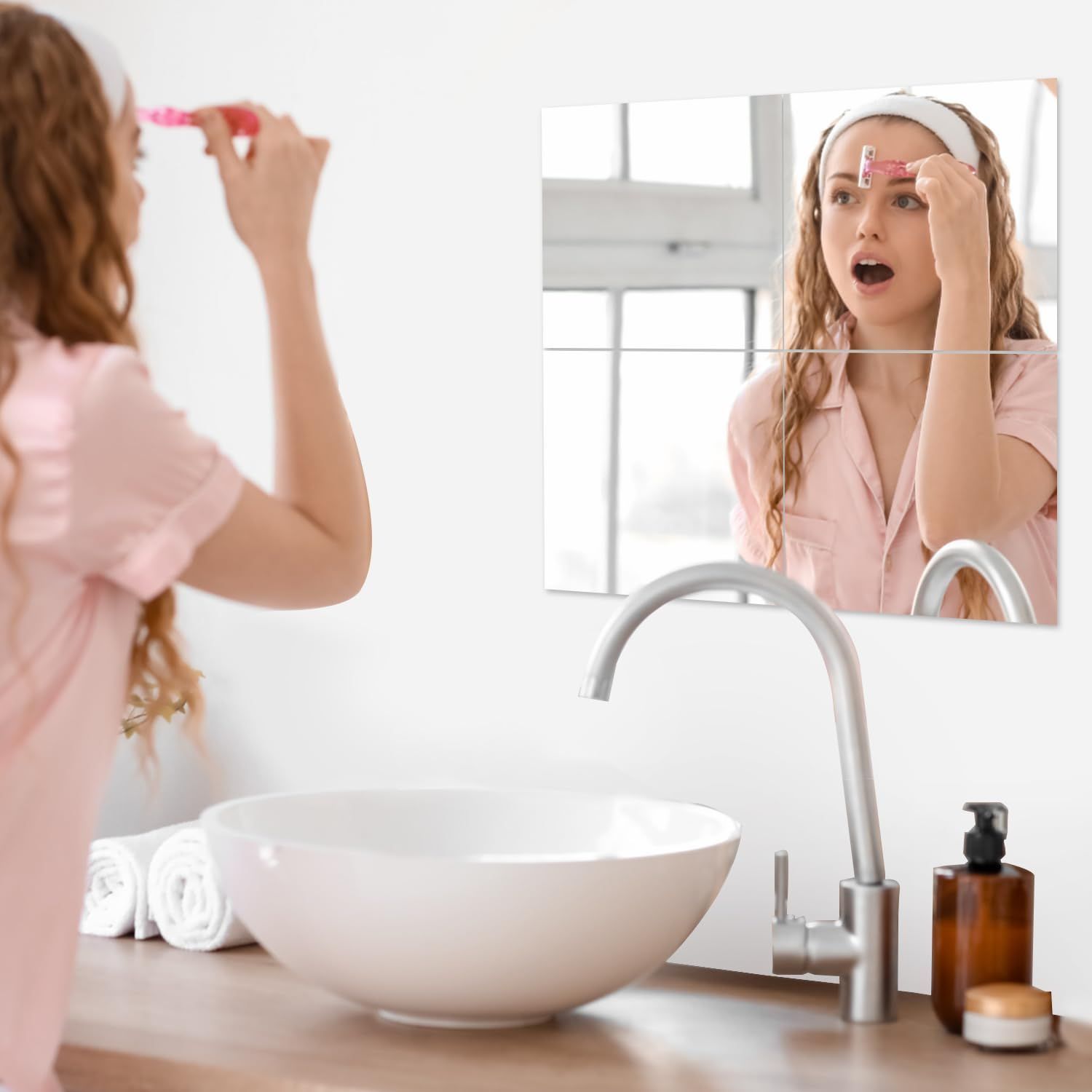 【どこでも貼れる 割れないミラー・30x30cm・5枚セット】鏡 壁掛けミラー 姿見鏡 全身 ミラー 割れない鏡 浴室 鏡 お風呂 鏡 壁に貼る鏡 壁掛け 全身ミラー リフェクスミラー 姿見 ダンスミラー 割れない 軽量ミラー 飛散防止 部屋 玄関ミラー, ホワイト, RXZER001