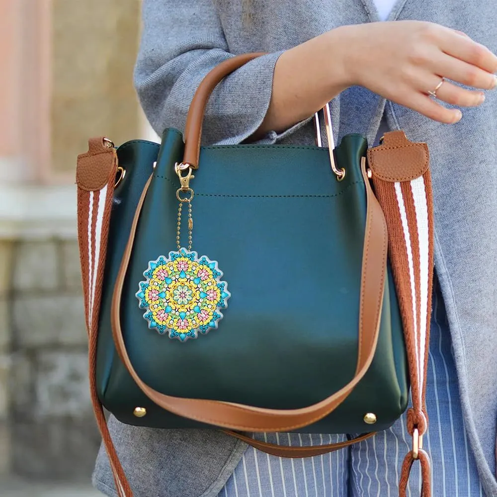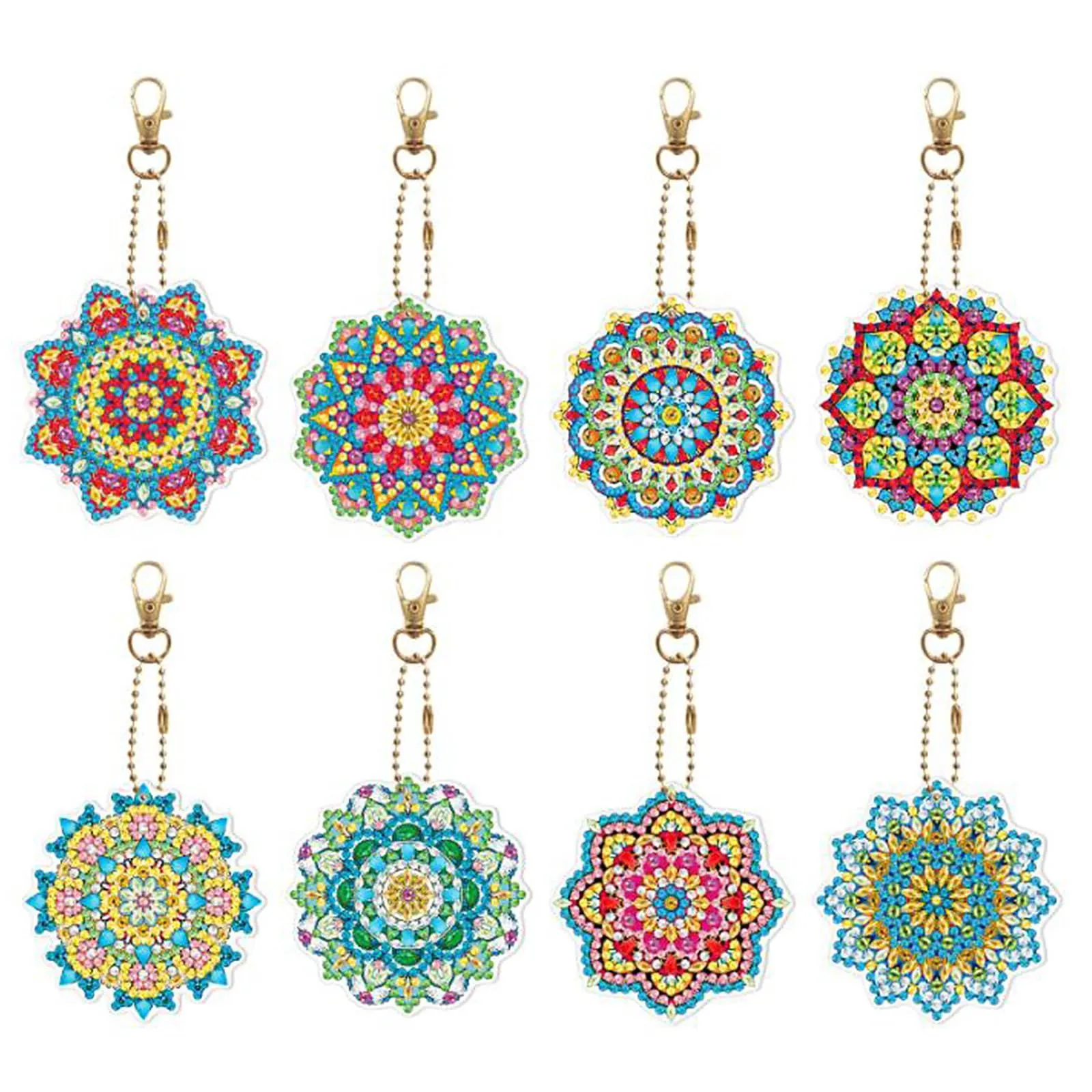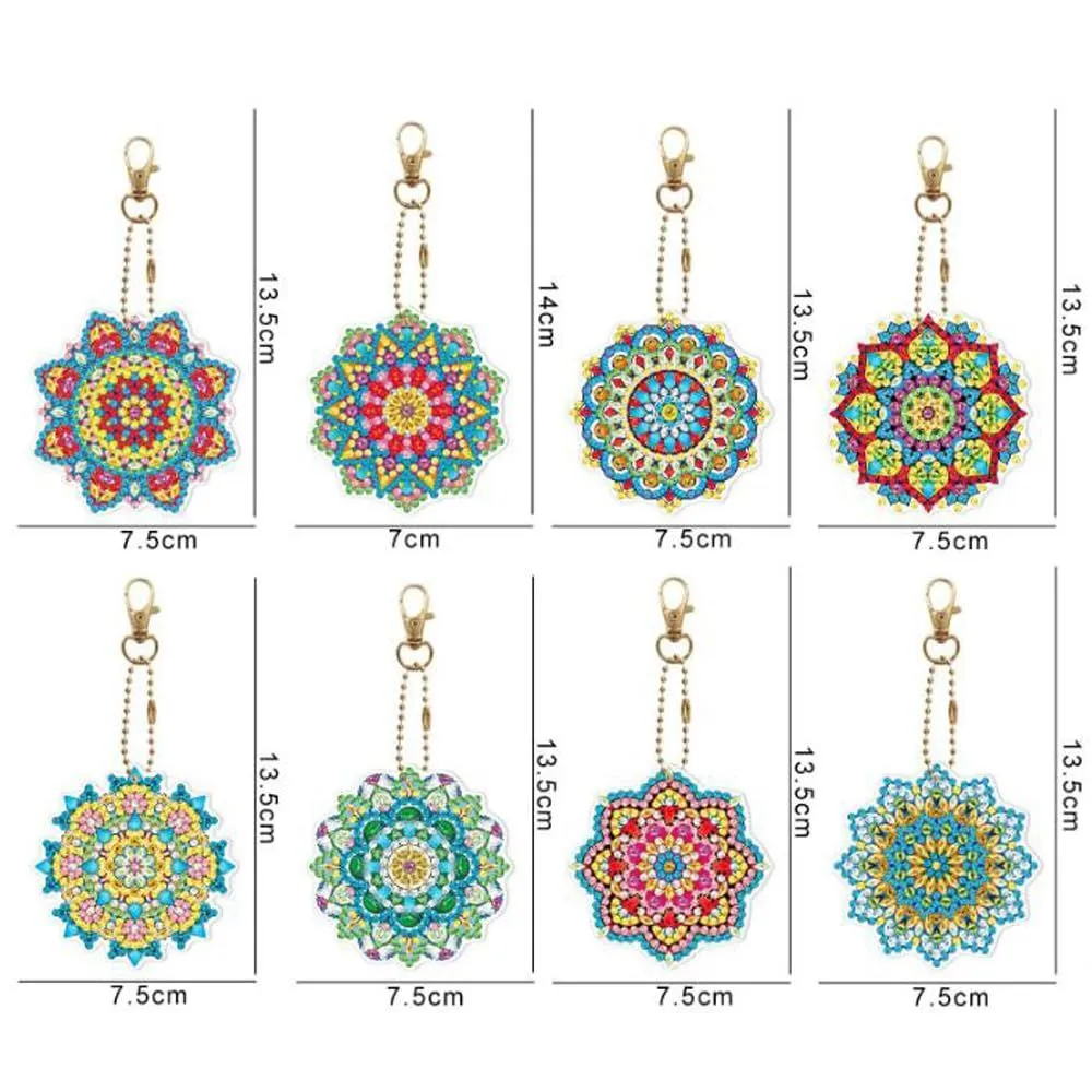キーホルダー 両面全貼り付け ビーズアート ダイヤモンドアート 8点セット 塗装キット 可愛い 曼荼羅 キラキラ 人気 手作りDIY GOODCHI クラフト用品 (曼荼羅)