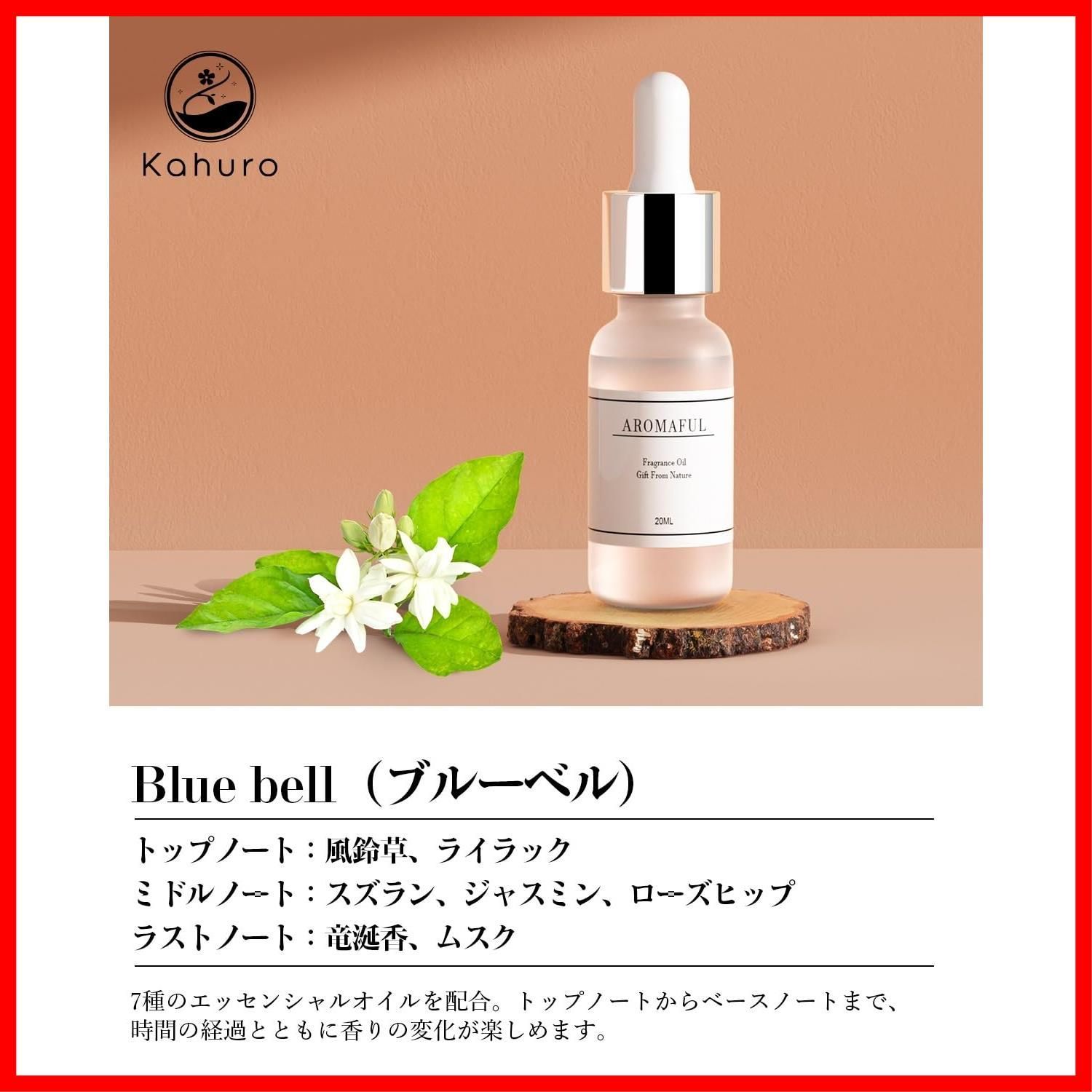 Kahuro ブレンドエッセンシャルオイル 20ml ブルーベル(Blue Bell )ナチュラル 精油 天然 アロマオイル アロマディフューザー用 アロマストーン用 プレゼントに最適 フローラルノート/オリエンタルノート