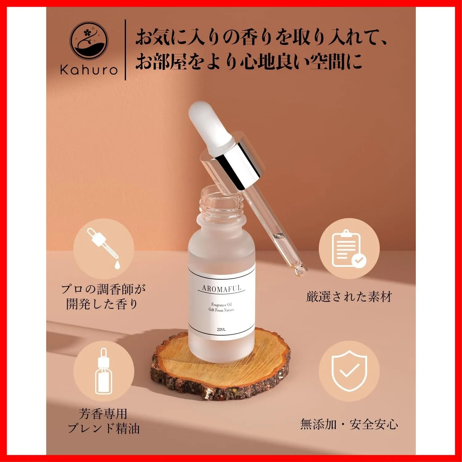 【多用途】仕事や勉強中のデスク、玄関、ベッドサイドなどの狭いところでは、アロマストーンなどに垂らして、リビングなどの広いお部屋ではエッセンシャルオイルを霧状にして拡散させるアロマディフューザーを使って香りを楽しみましょう。