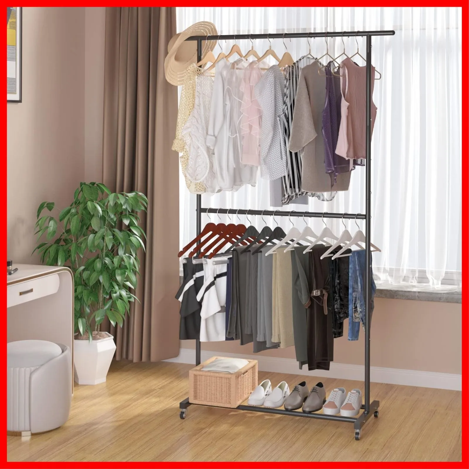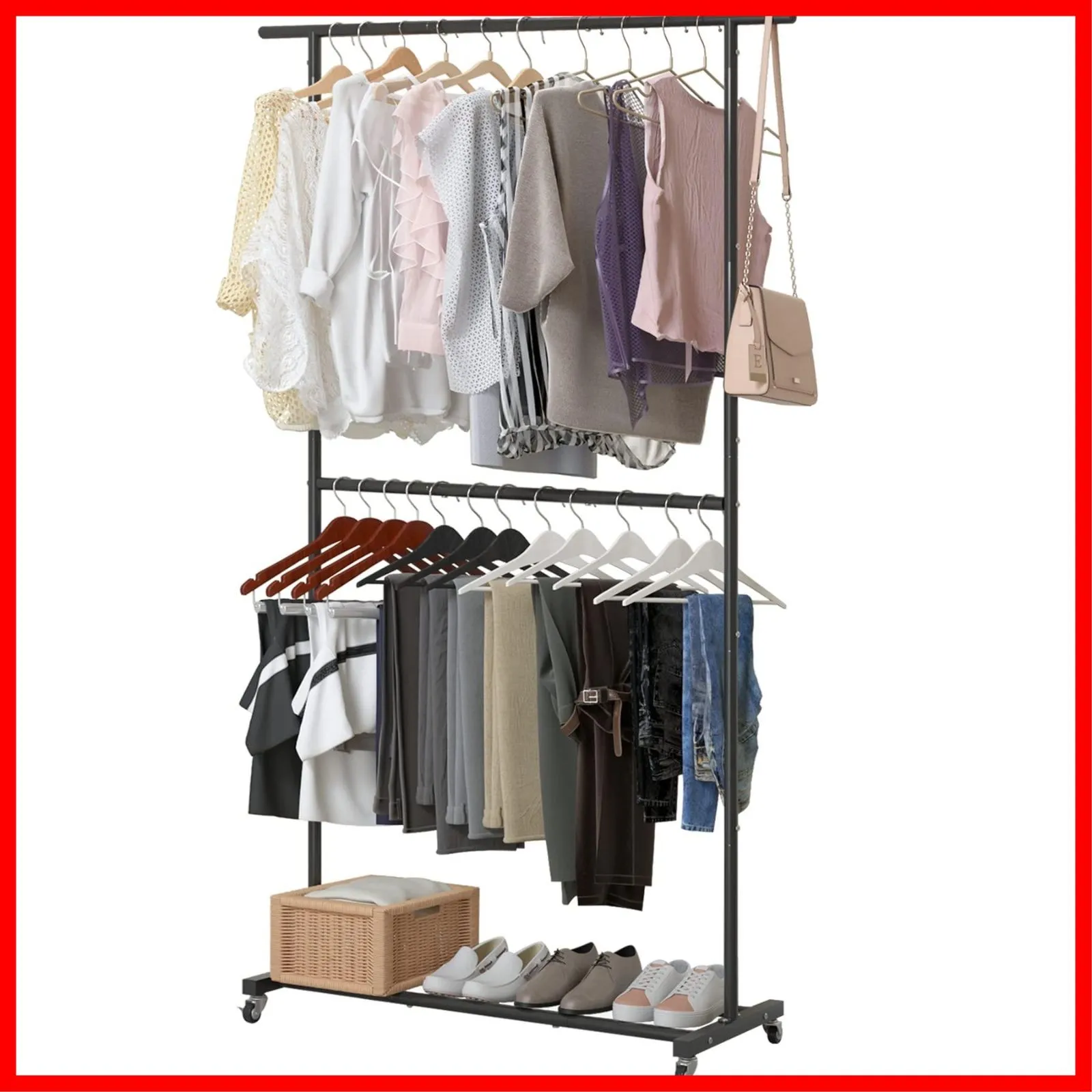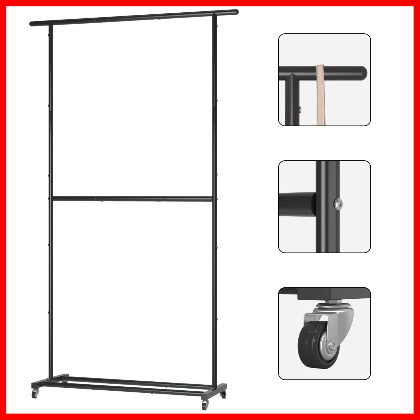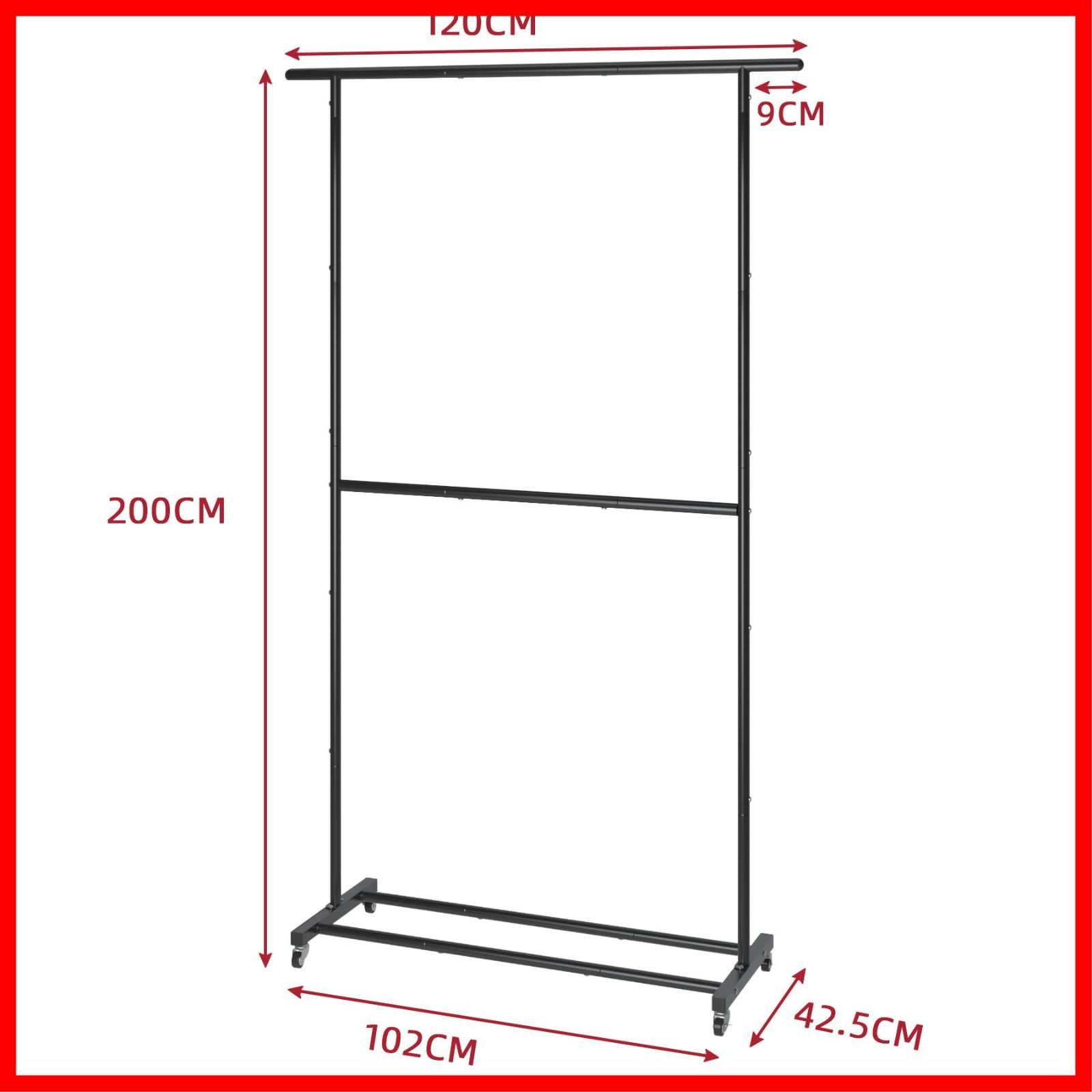 UDEAR ガーメント ラック 自立型 ハンガー 多機能 衣類 ダブル ハンガー ラック 車輪付き 120*42.5*200cm ブラック