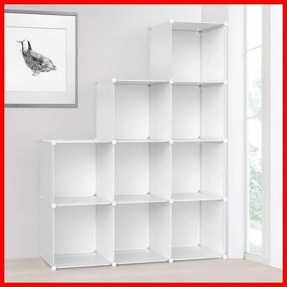 Vacplus 収納棚 大容量 収納ラック 組み立て式 整理棚 収納ボックス 本棚 衣類収納ボックス 多用途 耐久性 省スペース 収納便利 ブラック 1個幅30×奥行30×高30㎝ 9ボックス (ホワイト)