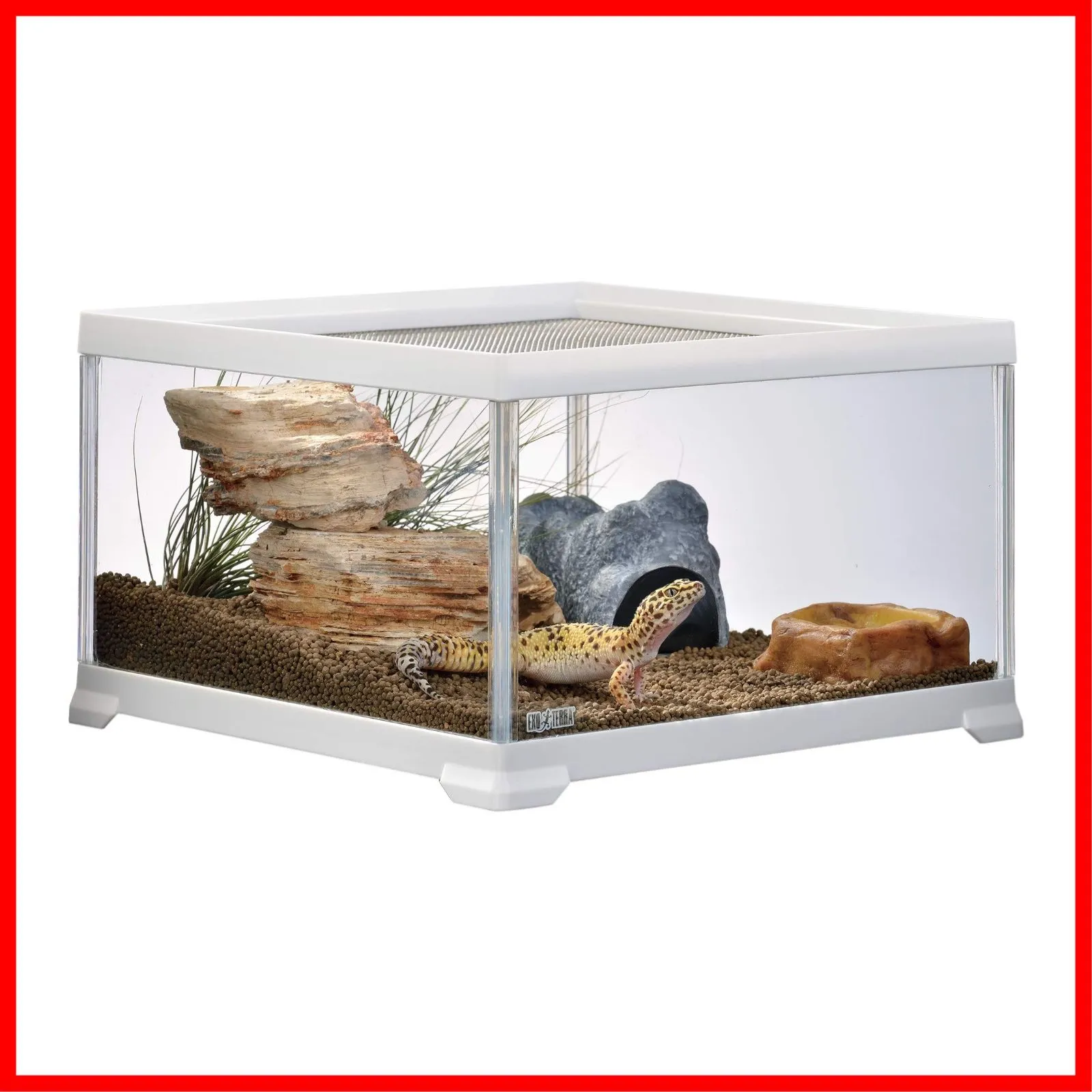 GEX EXOTERRA レプテリア レオパ飼育キットM 爬虫類用ガラスケージ 6点スターターセット ヒーター付 W31.6×D31.6×H19.2cm