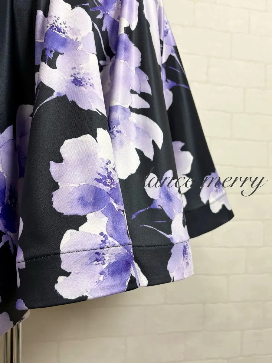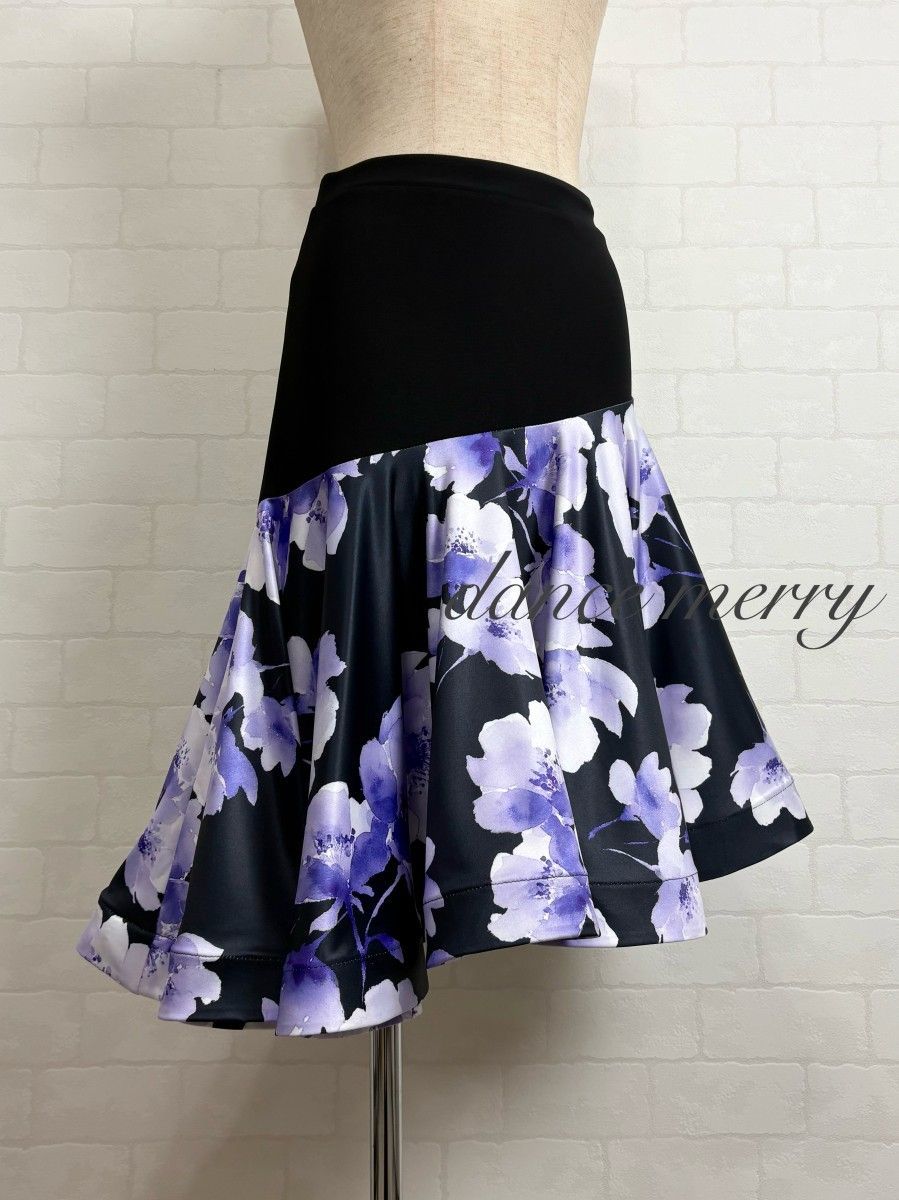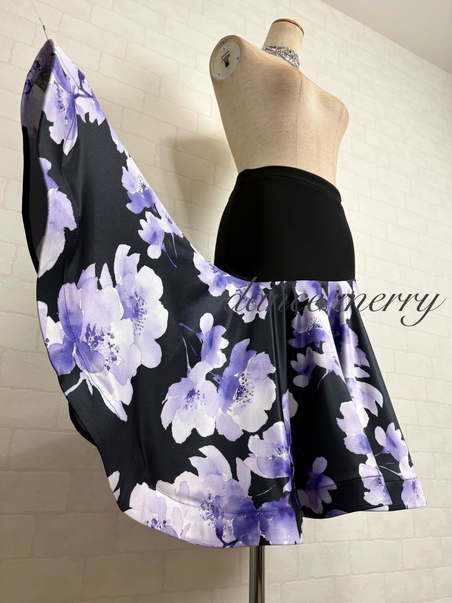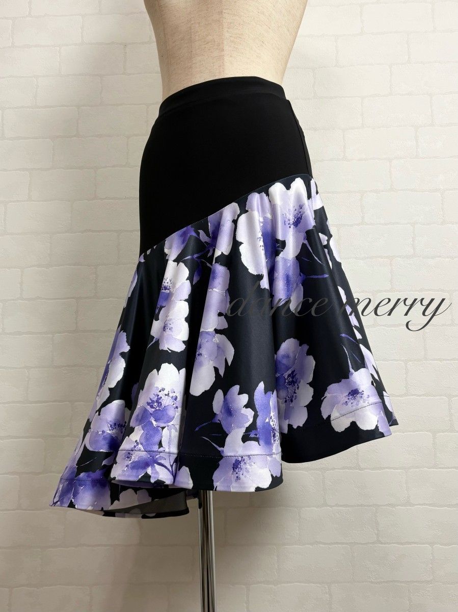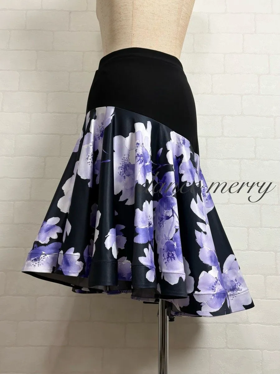 新品 社交ダンス ラテン スカート 黒 紫 白 花柄 0314 レッスン パーティ チャチャチャ サンバ 0312 0313