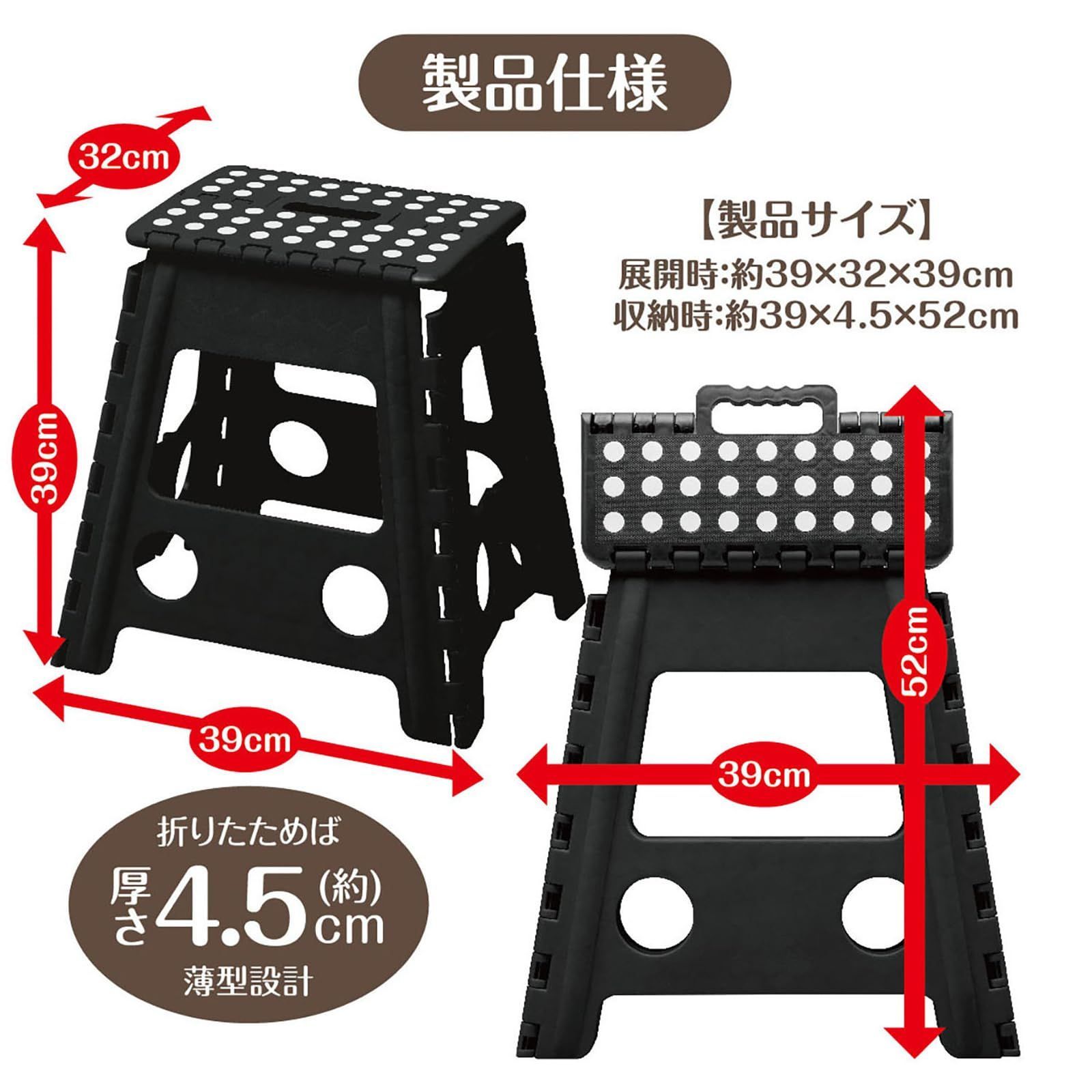 【わんだふるSHOP】をご覧いただきありがとうございます。 送料は全国一律無料となっております。 以下商品説明となります。 ------------------------------------ トレードワン(TRADE ONE) 踏み台 折りたたみ椅子 座椅子 ステップ 耐荷重100kg 高さ39×幅39×奥行32cm 室内・屋外 チェア アウトドア キャンプ 洗車 セノ・ビー LITE ブラック 10461 色: ブラック_サイズ: 高さ39cm サイズ(約):使用時/幅39×高さ39×奥行32cm、収納時/幅39×高さ45×奥行4.5cm 原産国:中国 カラー:ブラック