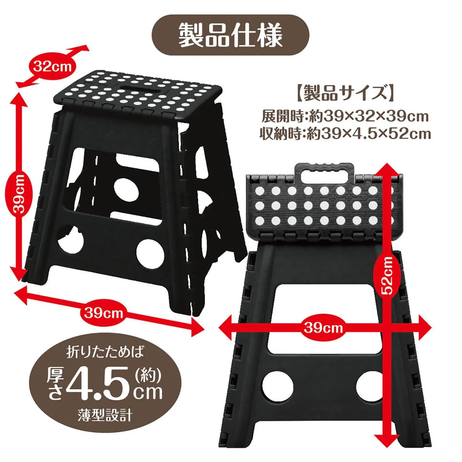 ●どこでも持ち出せて、サッと使えるコンパクト踏み台。あとちょっと・・・の時に便利な39cmアップ!