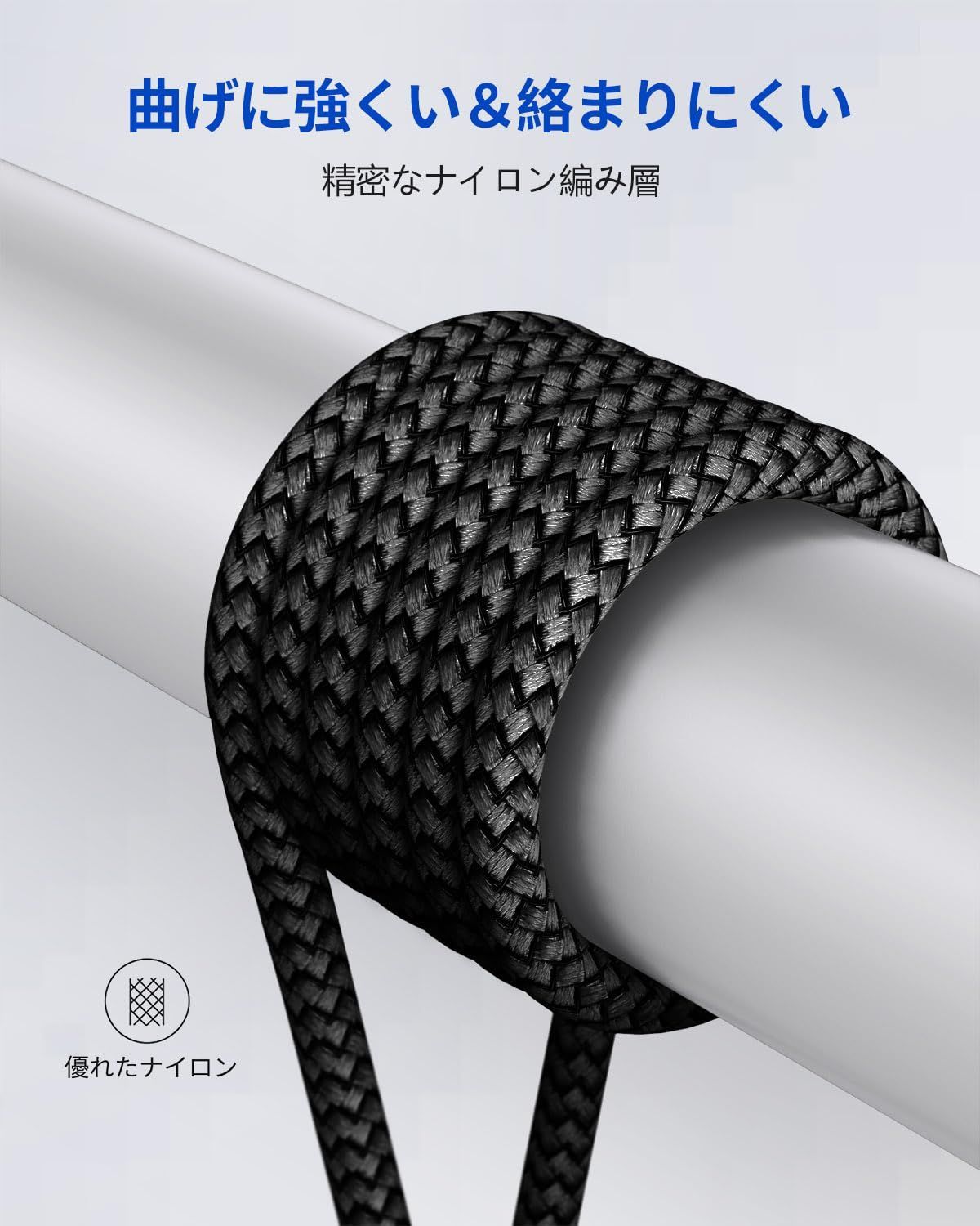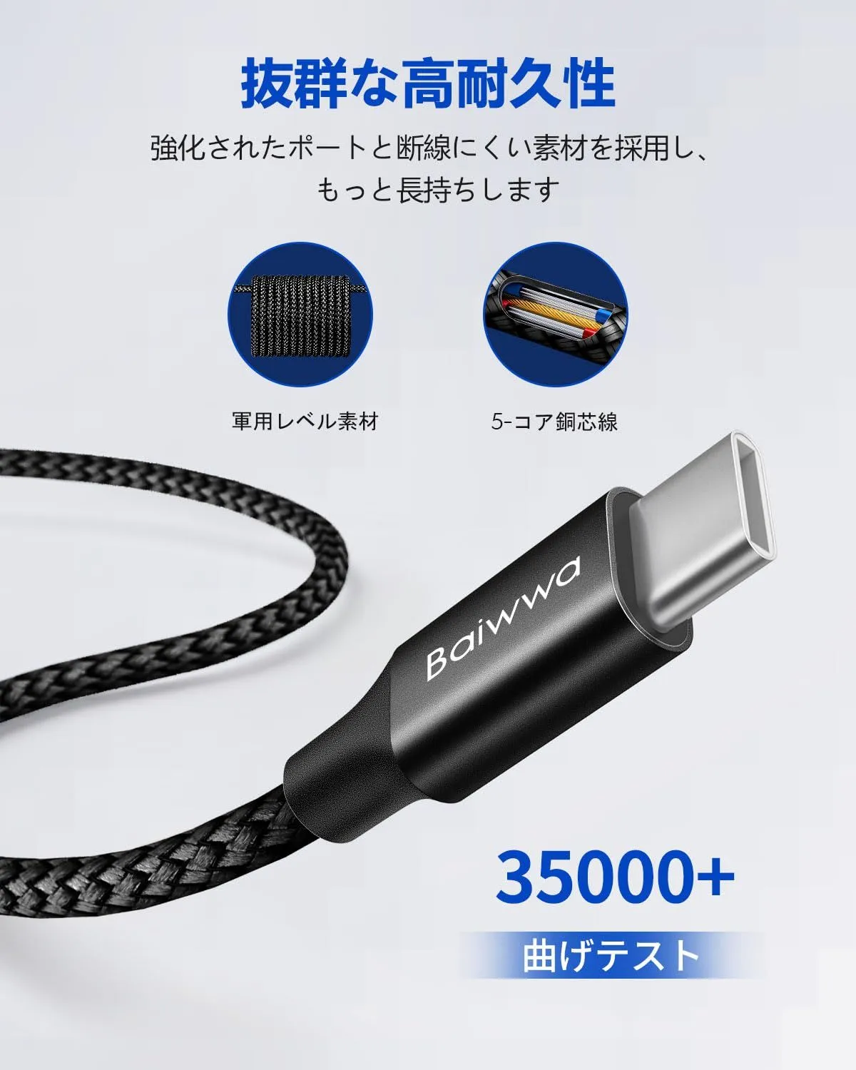 【驚きさの高耐久性】曲げに強くて、絡まりにくさを兼ね備えるの優れたナイロン編みType C ケーブルは、35000回の厳しい折り曲げ試験と5000回の抜き挿し試験に合格した。一般的なUSBケーブルより寿命を4倍以上に向上する高耐久USBC 充電ケーブルです。