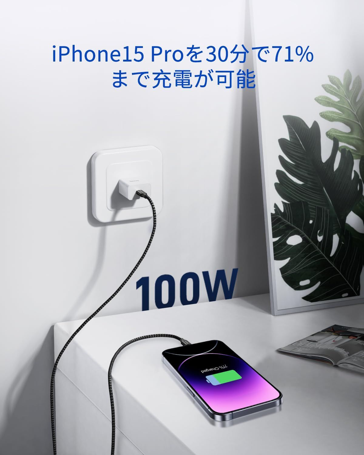 ◆フルスピード充電 最大100Wの高出力に対応し、ノートPCやタブレット端末、スマートフォン等の幅広い機器にフルスピード充電が可能です。