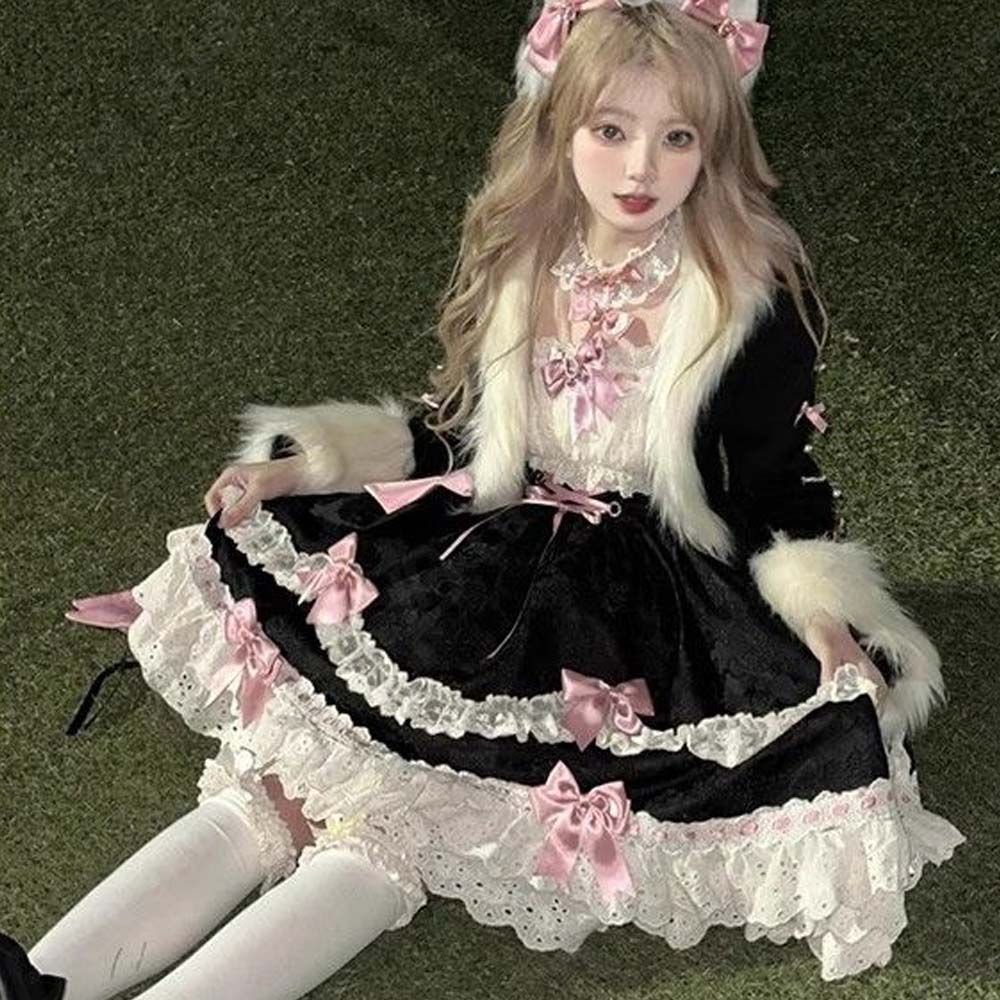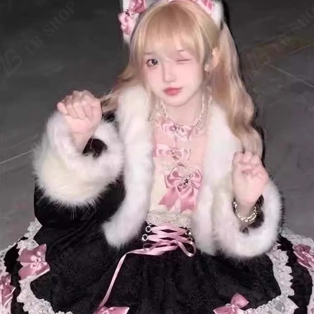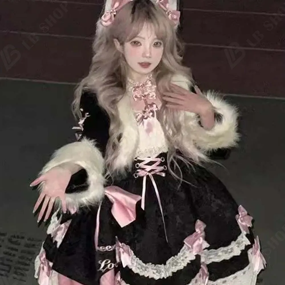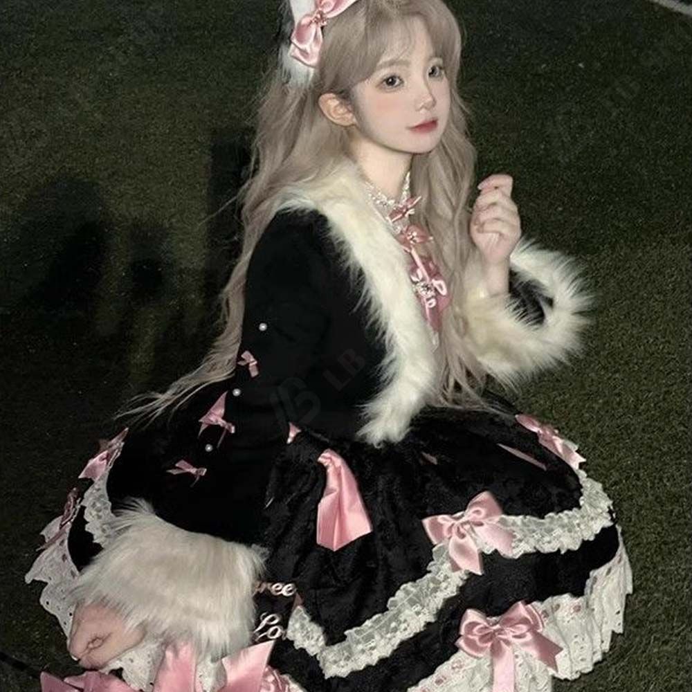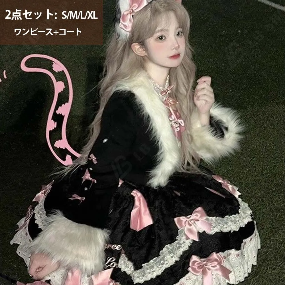 Lolita コートワンピースセット レディー ロリータ 2点セット S-XL 冬服 新品 保温 可愛い モコモコした 柔らかい あたたかい で可愛さ満点のプリンセススタイル 17日以内に発送
