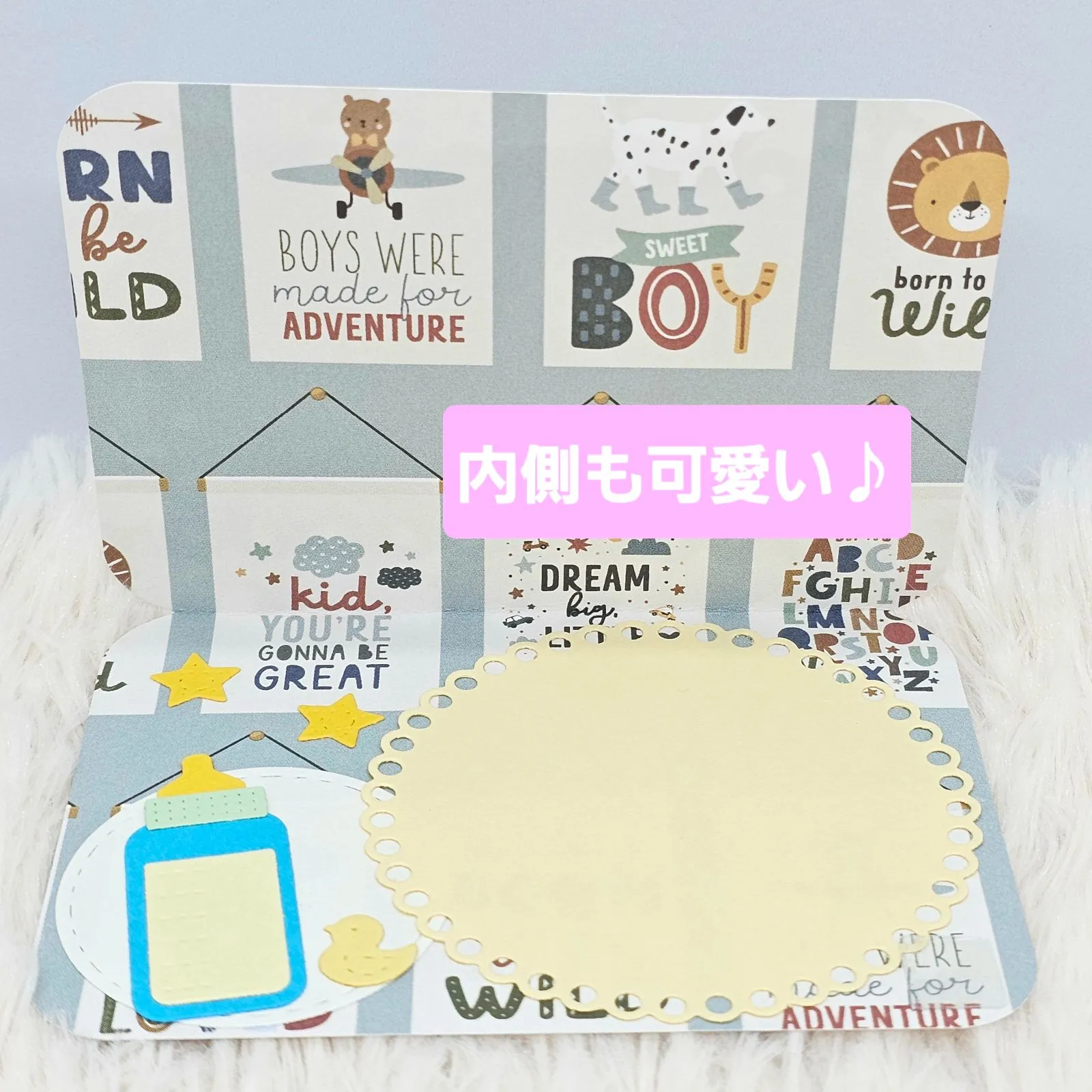 内側も可愛いのでメッセージを読むときも楽しんでいただけます♪言葉も一緒に添えて、とても温かいプレゼントになります♪