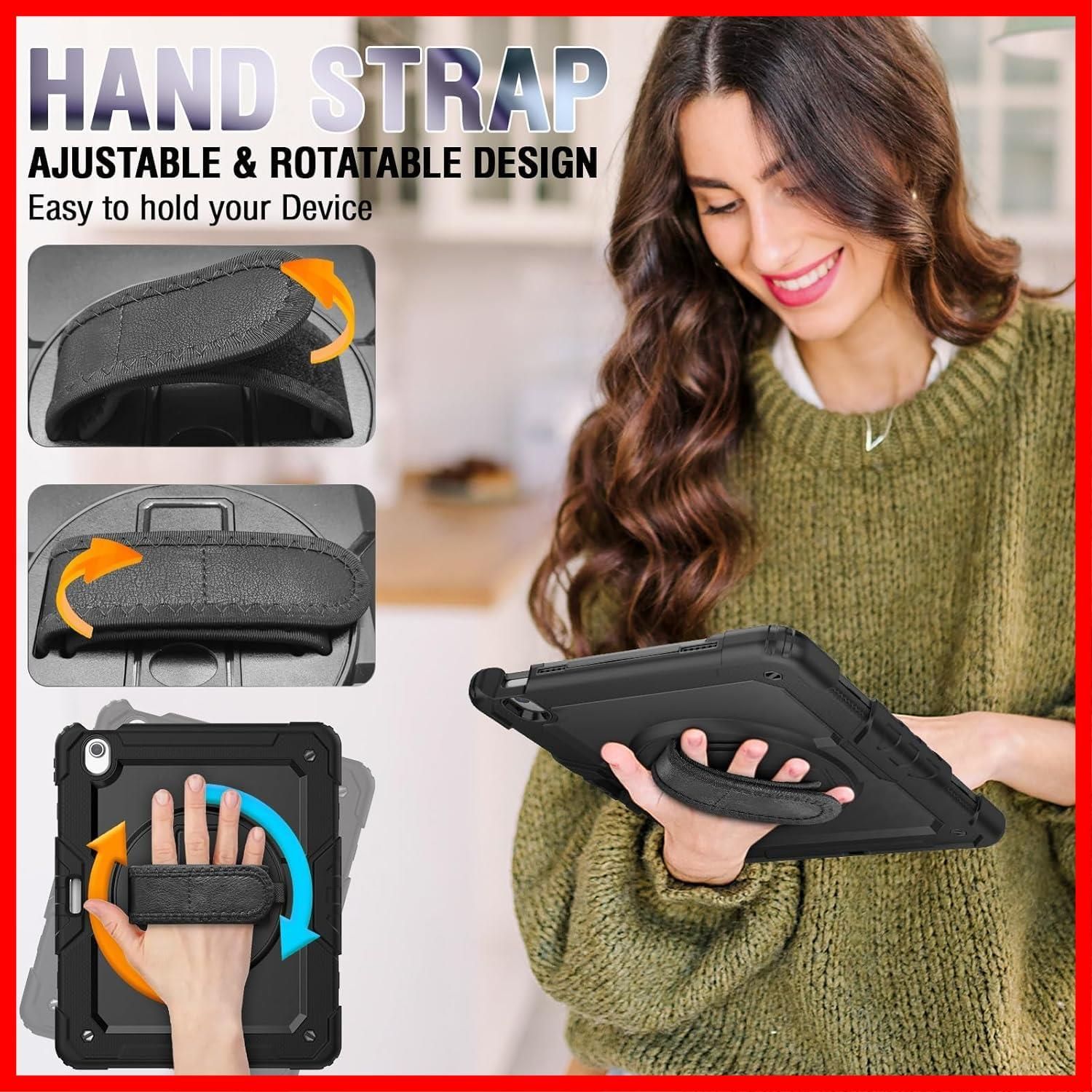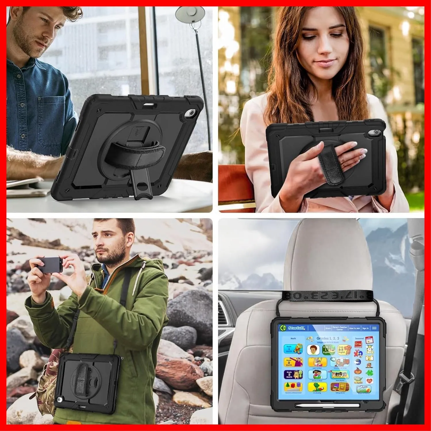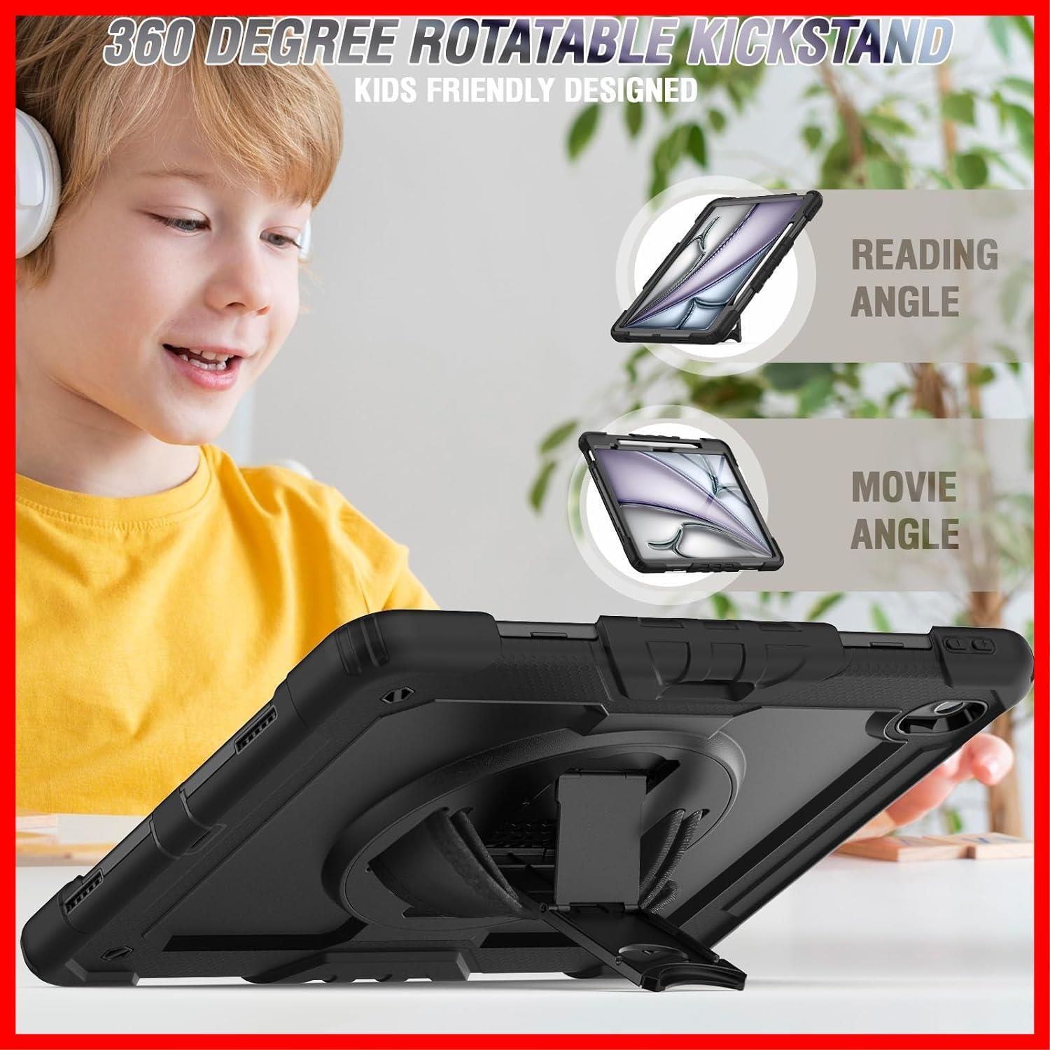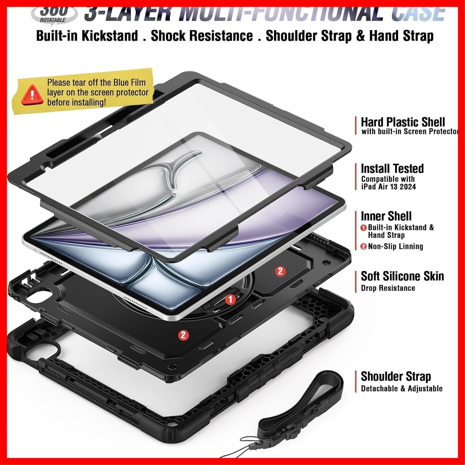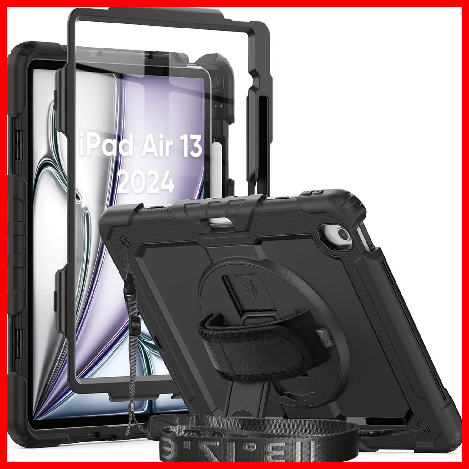 Herize iPad Air 13 ケース 2024/2025 M2/M3 アイパッドエアー13 インチ カバー ケース A2898 A2899 耐衝撃 頑丈三層鎧 内蔵保護フィルム ペン収納 360°回転スタンド 柔らかい 丈夫 ハンドストラップ 防塵 多