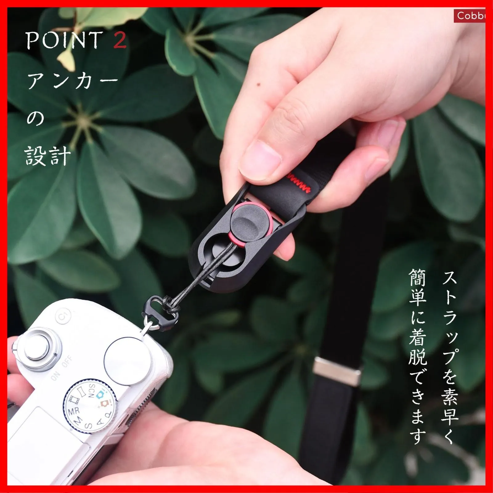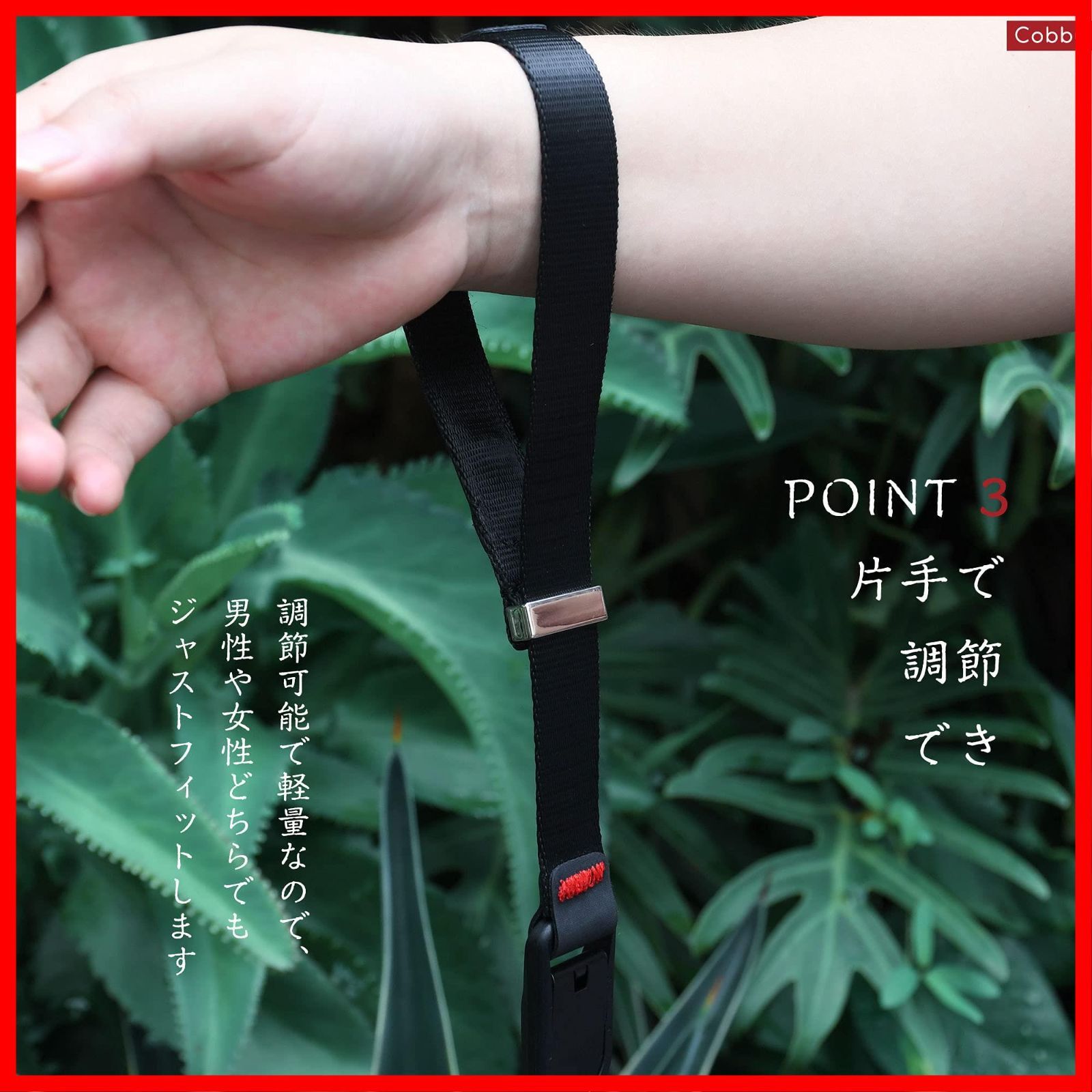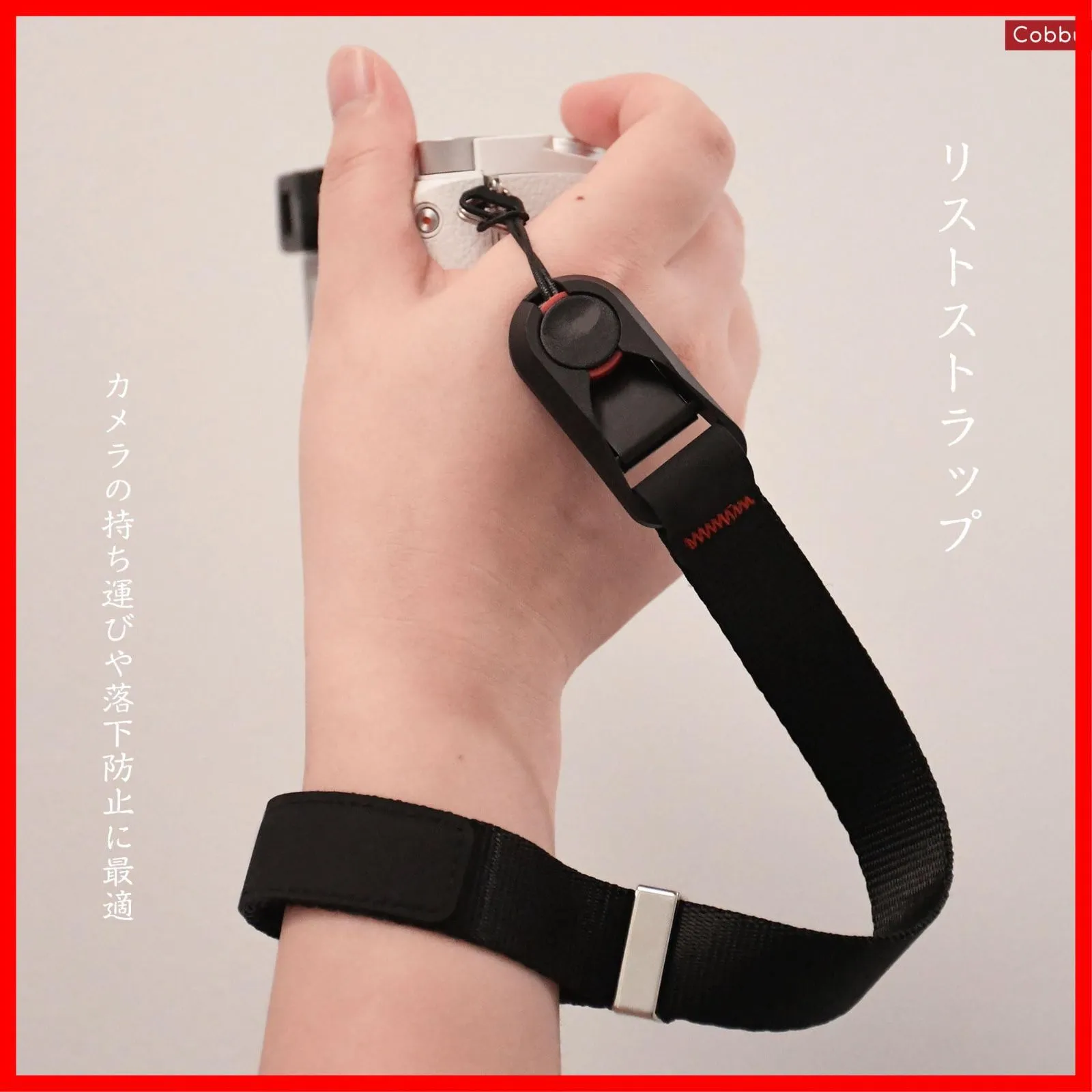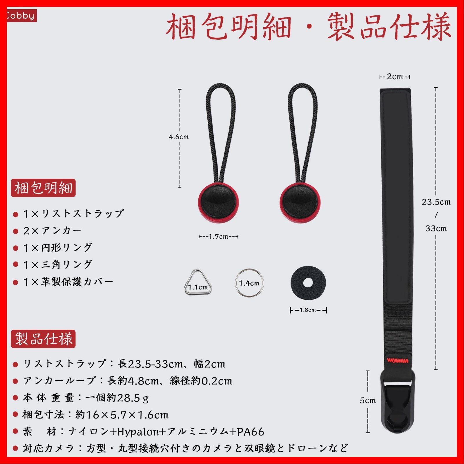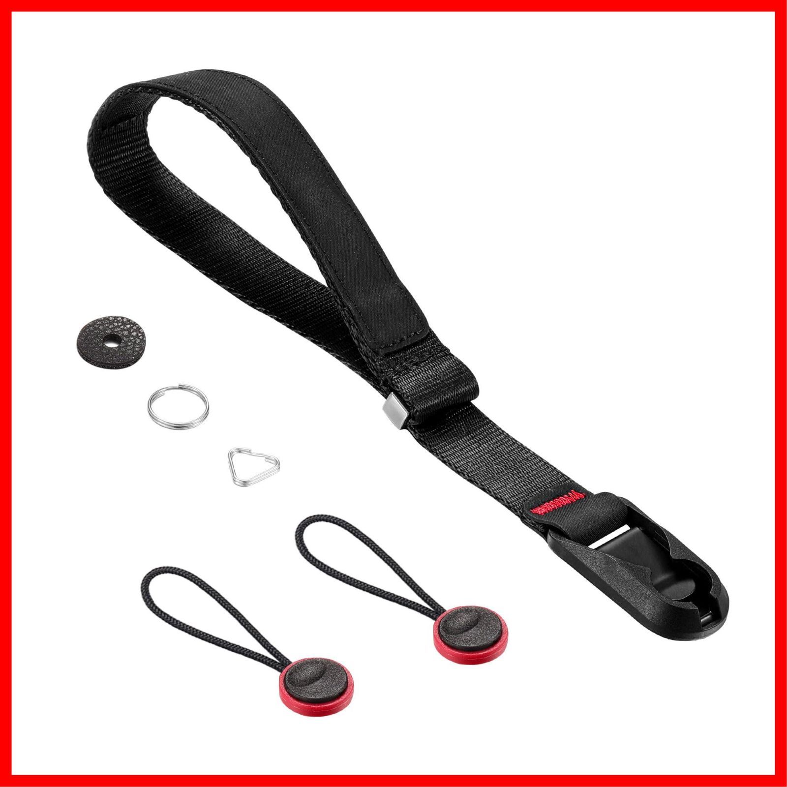 [Cobby] リストストラップ ハンドストラップ 磁気バックル アンカー設計 一眼レフ・ミラーレス用 円形・三角リング付 ブラック