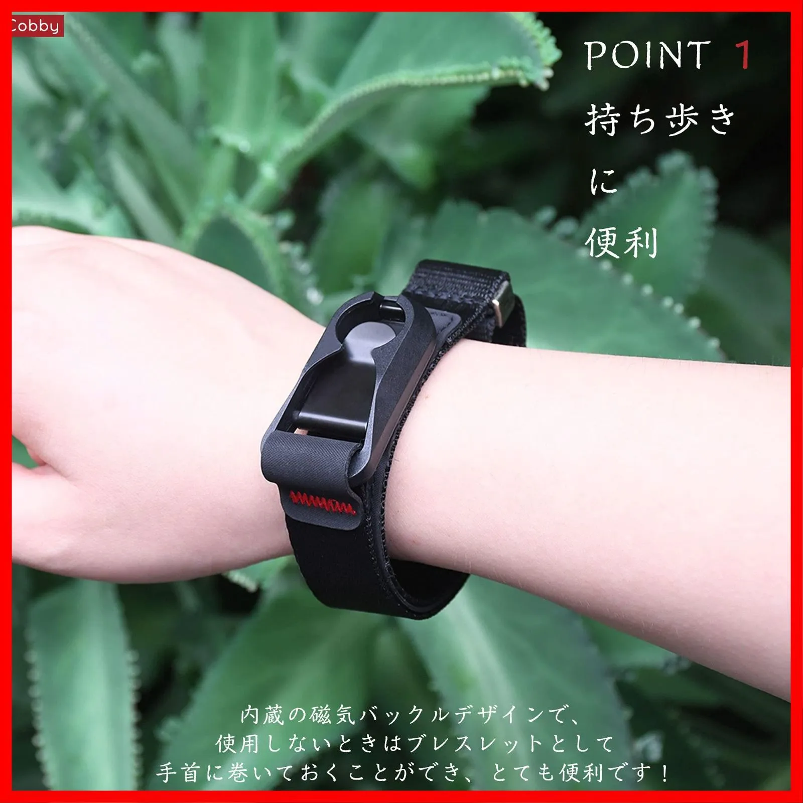 【磁気バックル】 内蔵の磁気バックルデザインで、使用しないときはブレスレットとして手首に巻いておくこともでき、とても便利です!