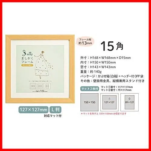 【 注 意 点 】 ・ フ ォ ロ ー頂 かないと確認が取れませんのでお手数お掛けしますが、ボ タ ン一つだけ ポ チ ッ とお願いいたします( * ?? ?*) ━━━━━━━━━━━ 万丈 VANJOH 3wayましかくフレーム 15角 ブラック 106213 [マット2枚付] 外寸: 168×168mm×15mm、内寸: 150×150mm、窓寸: 143×143mm、重量: 約140g 材質 フレーム:樹脂製、裏板:MDF材、面材:0.5mm厚透明樹脂板 マット台紙2枚付き(紙マット) 1.127×127mm写真用:[マット窓寸]117mm×117mm、2.L判写真用:[マット窓寸]79mm×117mm かぶせ箱(白箱)+ヘッダー付OPP袋 壁掛用金具、縦横兼用スタンド付き 正方形がかわいい、軽くてシンプルなフォトフレームです。 マットを外せば、刺繍・ハンドメイド作品など厚み2.5mmの作品まで収納できます。 面材を外せば、厚み3mmのものまで収納可能です!! ━━━━━━━━━