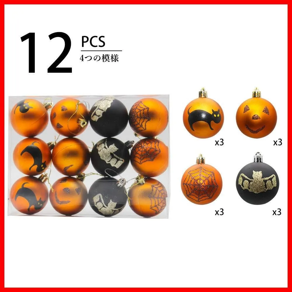 ハロウィン装飾 飾り ボールオーナメント 豪華 北欧 12個 ハロウィーンボール おしゃれ 店舗 部屋 喫茶店 ホームデコレーション用小物 キラキラ ボール ハロウィンアクセサリー (6cm)