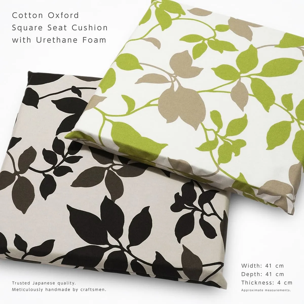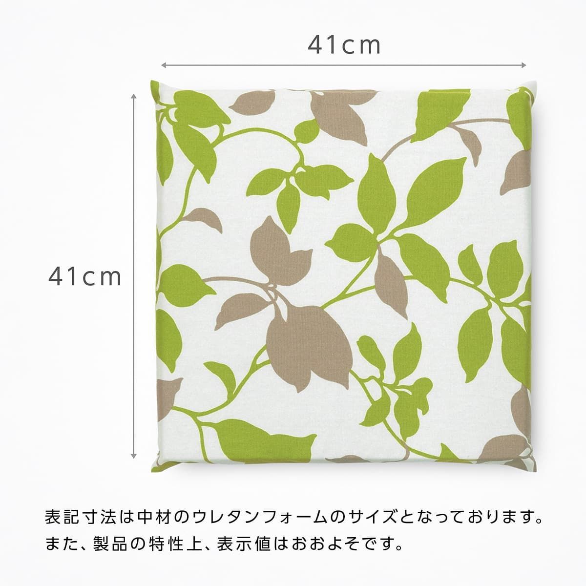 クッション 41×41×4cm 北欧 リーフ柄 綿100% チェアパッド ウレタンフォーム カバーリング 椅子 座布団 セット済み 四角 スクエア おしゃれ カバーを外して洗える コットン 植物柄 ボタニカル ナチュラル ダイニングチェア シートクッション