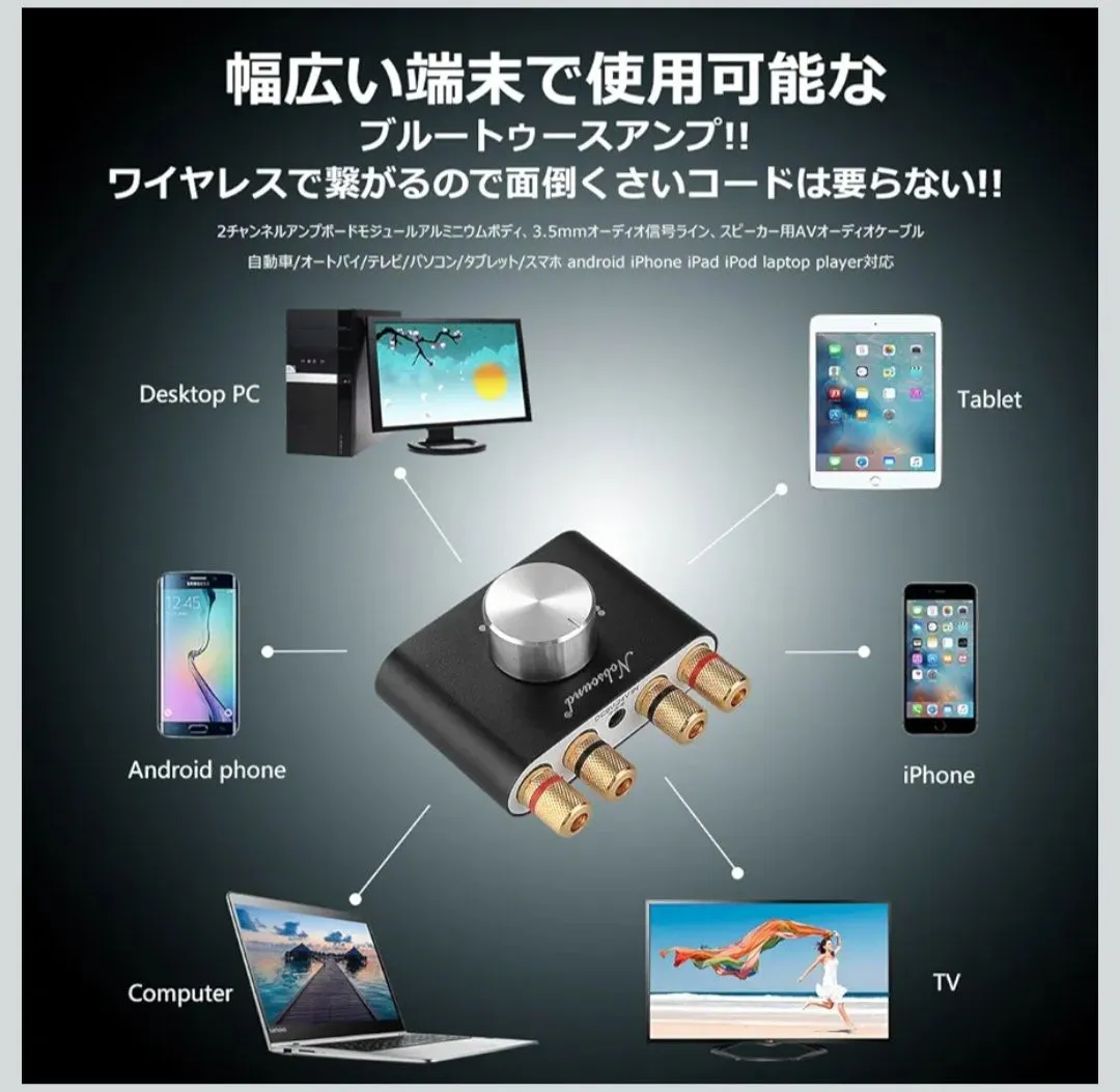幅広い端末で使用可能なブルートゥースアンプ!! ワイヤレスで繋がるので面倒くさいコードは要らない!!
